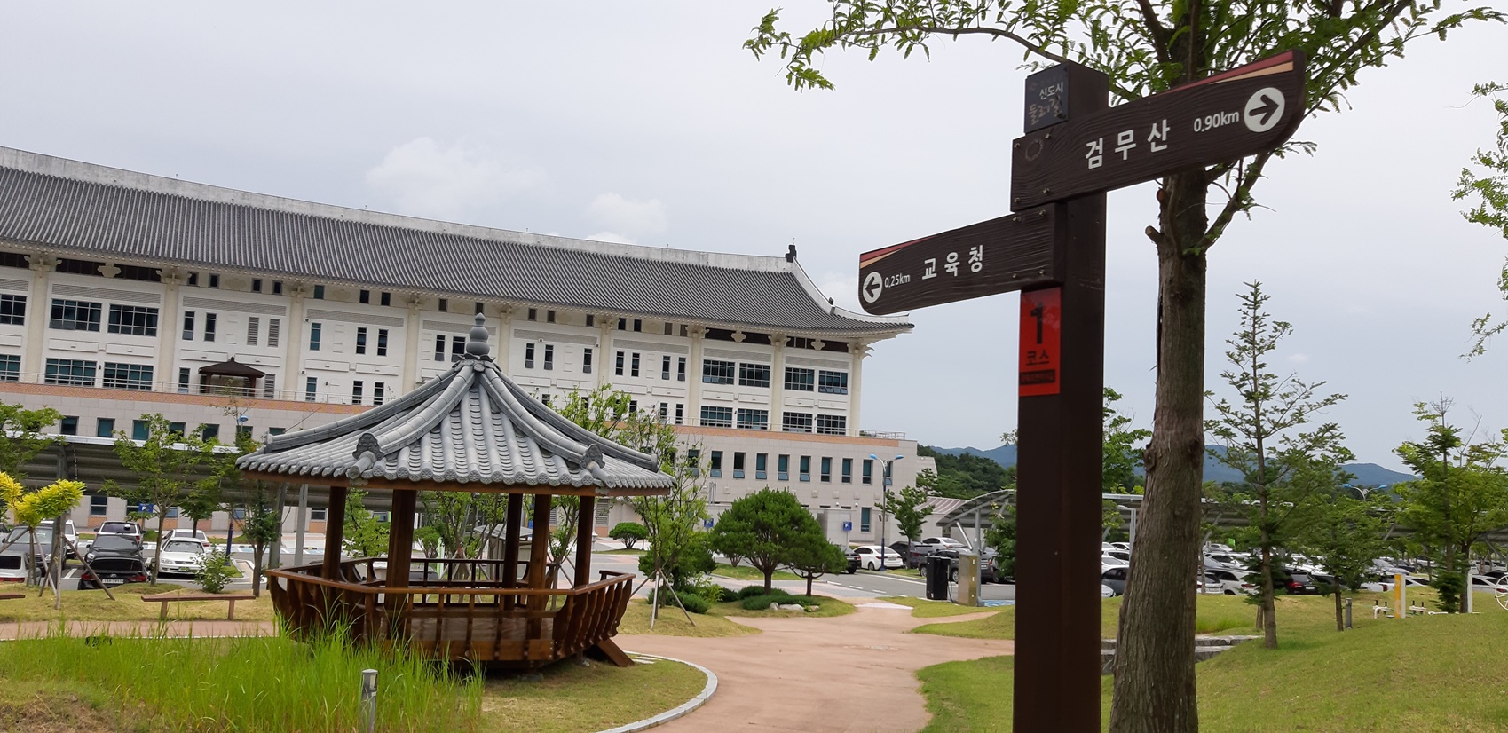 1코스; 7.0km로 신청사 → 검무산 → 교육청 → 호민지 → 천년숲 → 신청사 구간이며,