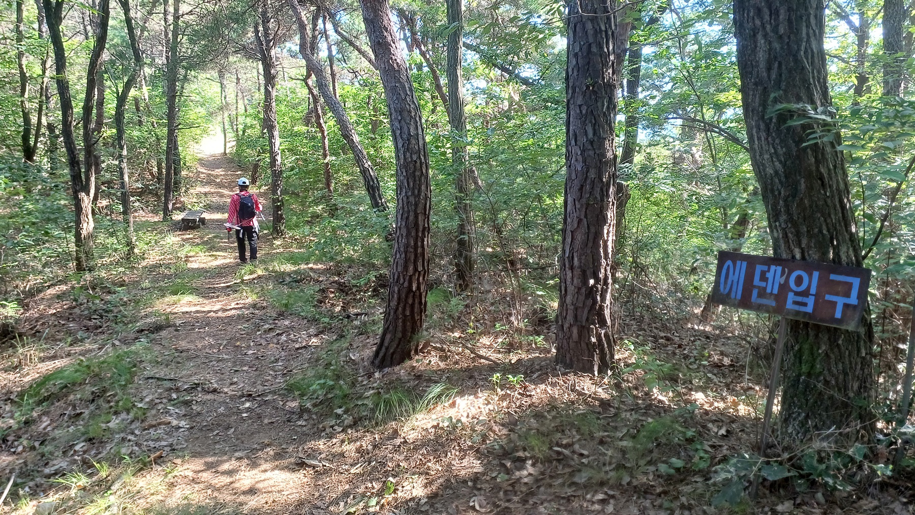 우측 나무 아래에 '에덴 입구' 표시판을 만나 지나면