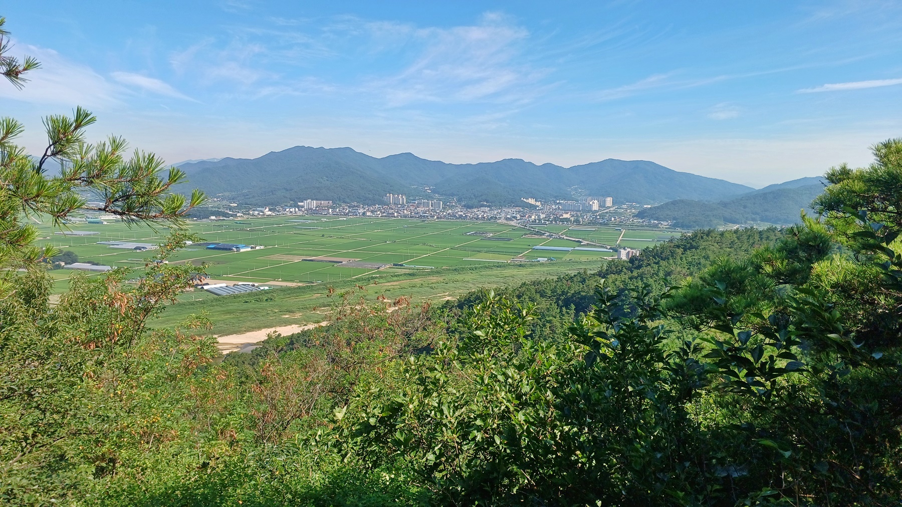 정상에서 조금 벗어난 조망 바위에 오르면 선산읍의 넒은 평야와 선산읍이 조망되고,