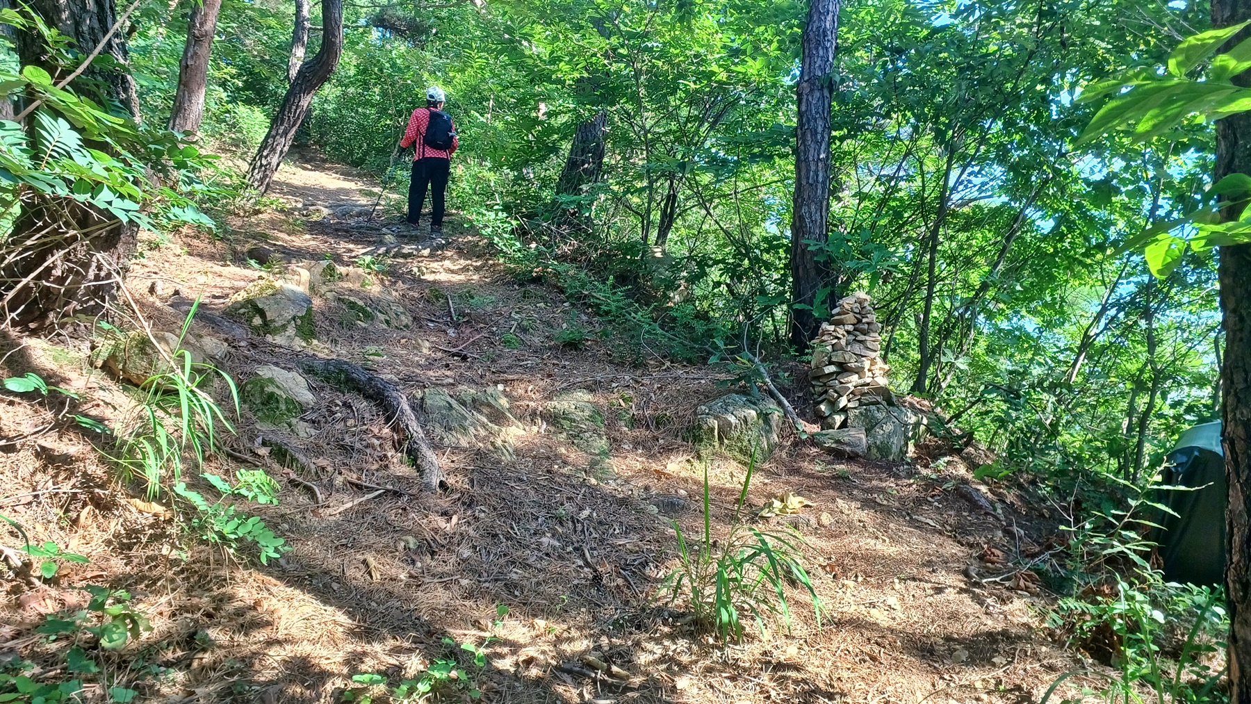 가파른 오르막길에 조그마한 돌탑을 지나고
