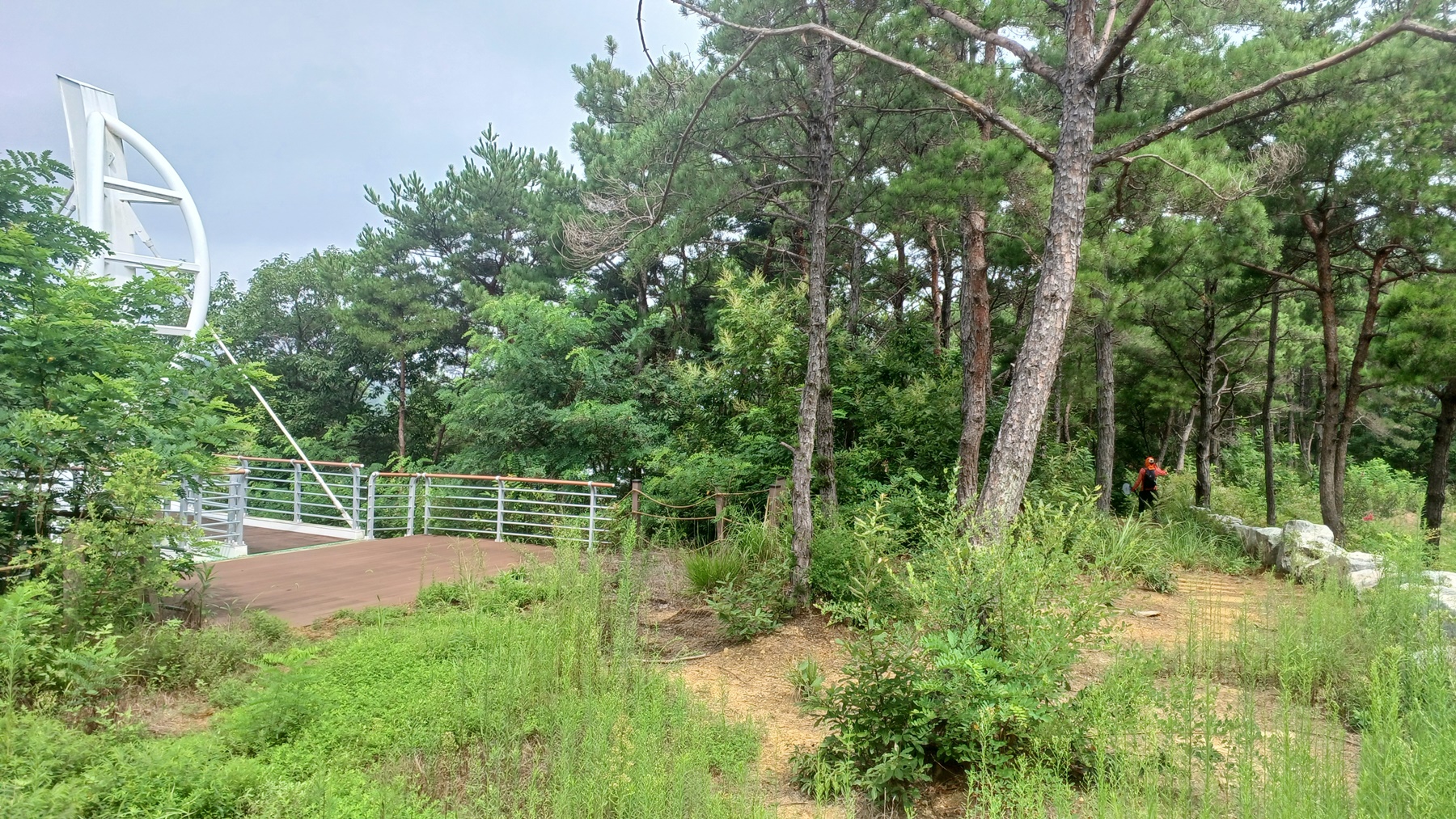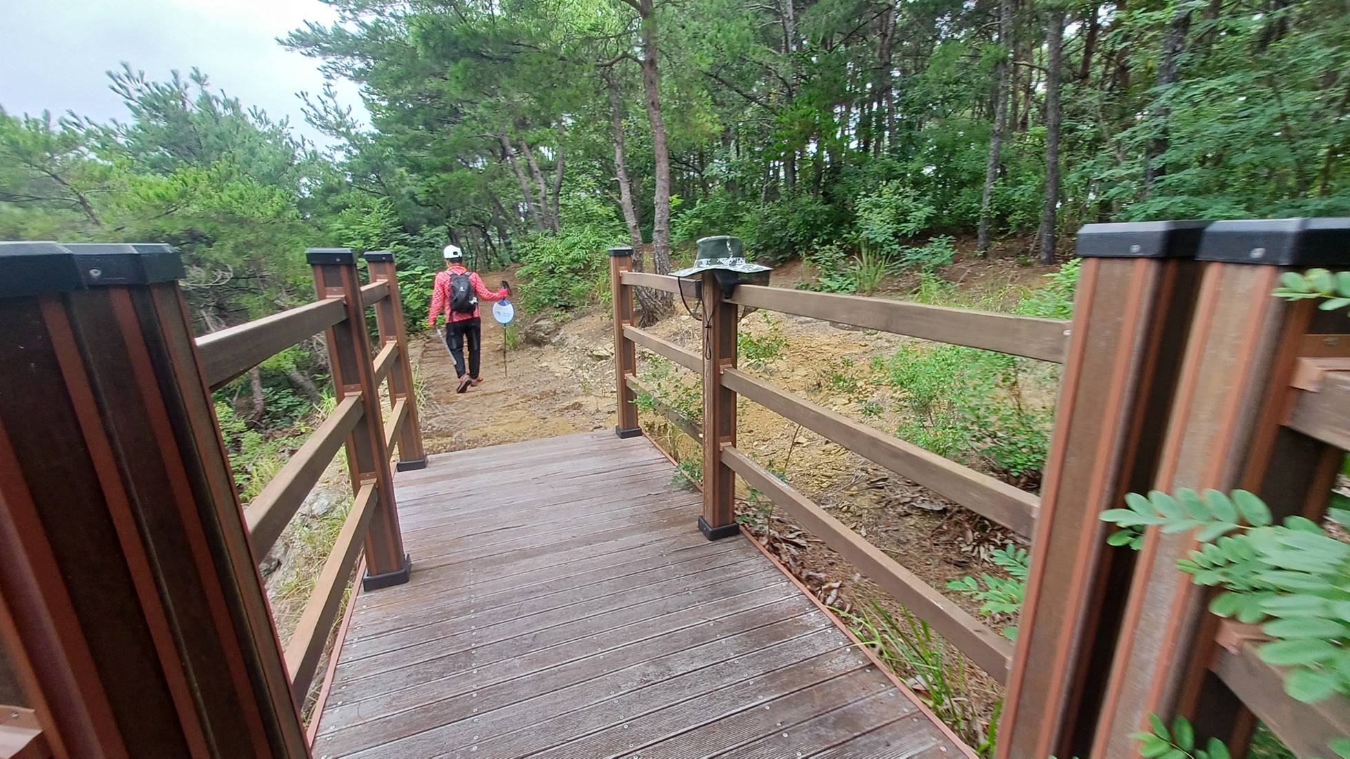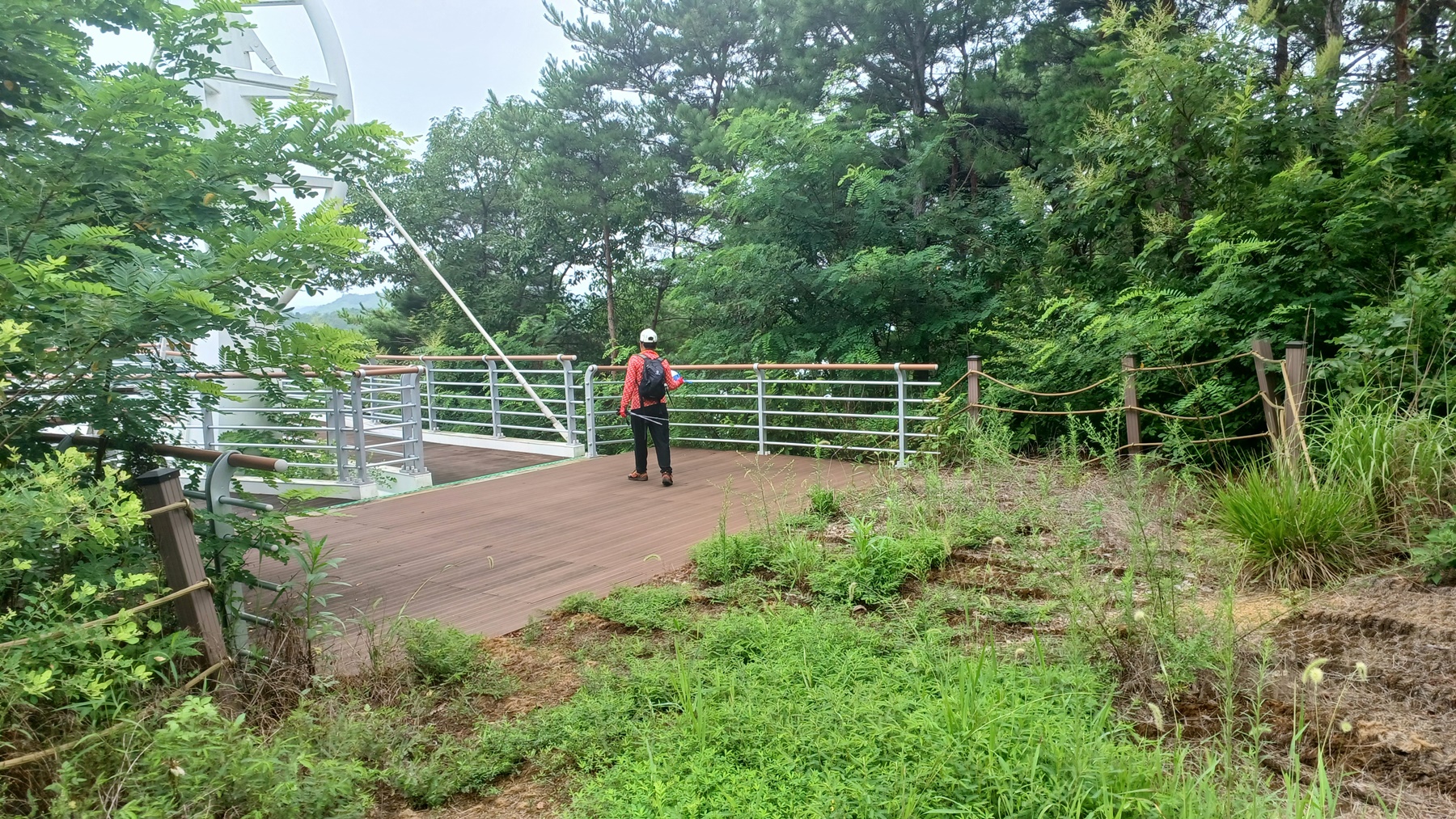 전망대 방향으로 출렁다리 입구 데크 계단을 올라서서