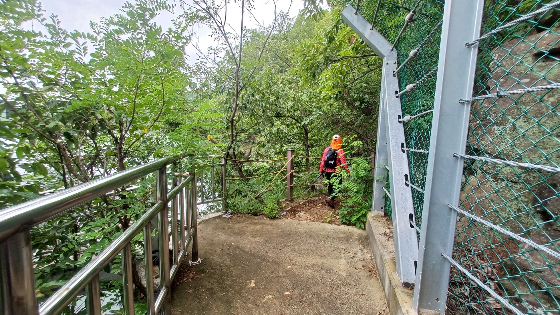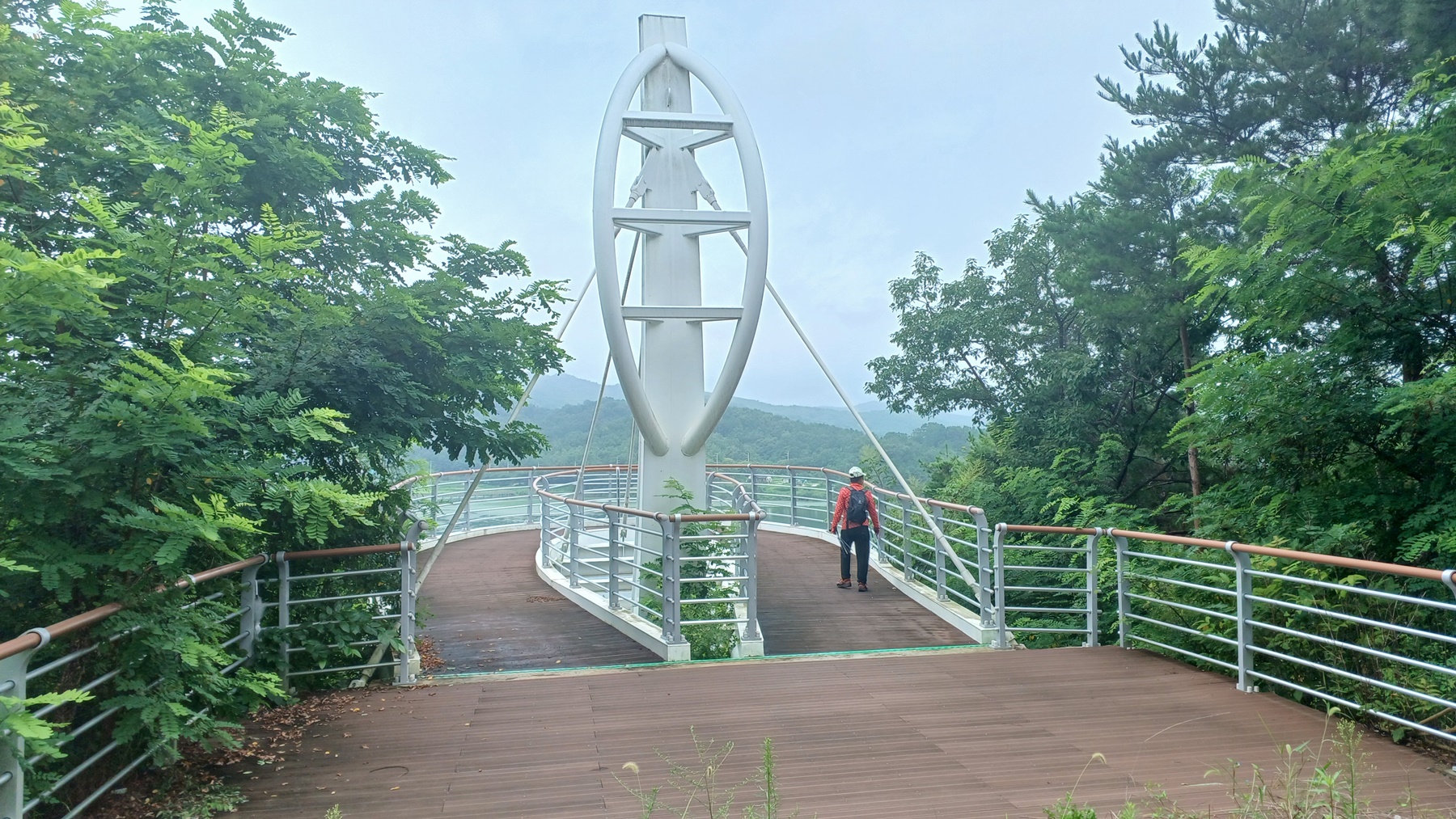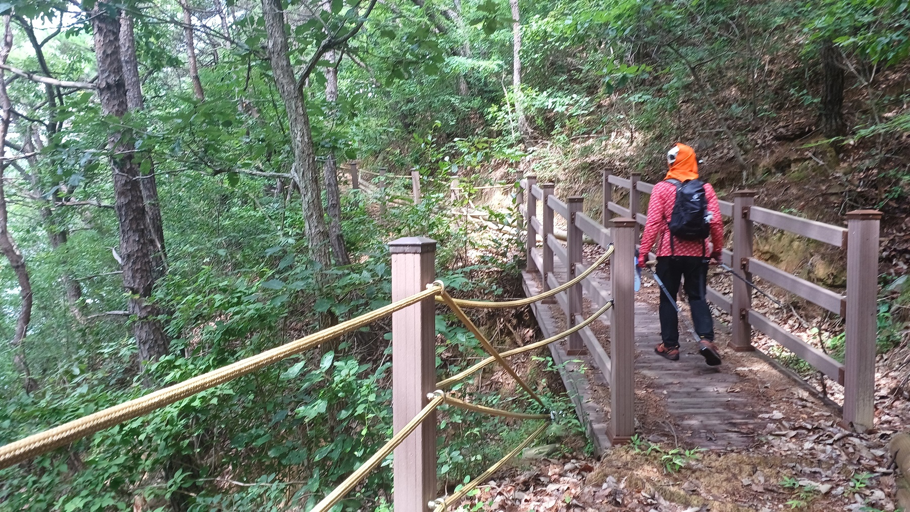 전망대 방향으로 출렁다리 입구 데크 계단을 올라서서