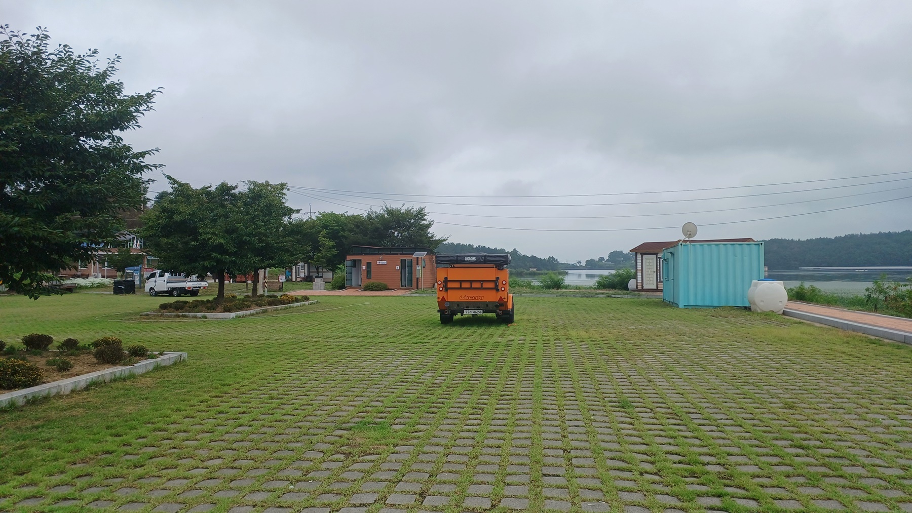 넒게 조성된 잔듸 광장의 조성지 주차장이다.