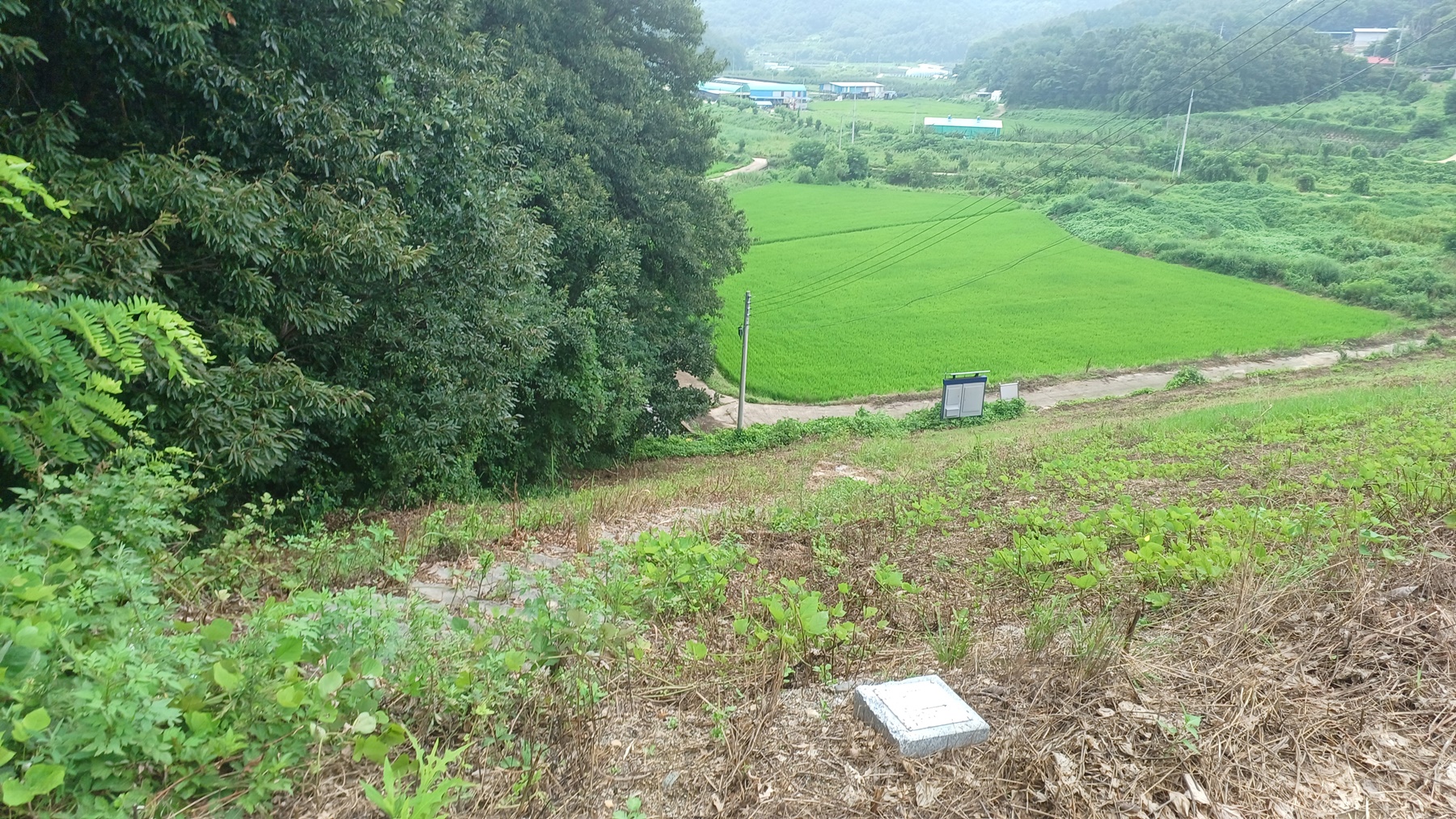 완만한 산사면 내리막길을 내려가면