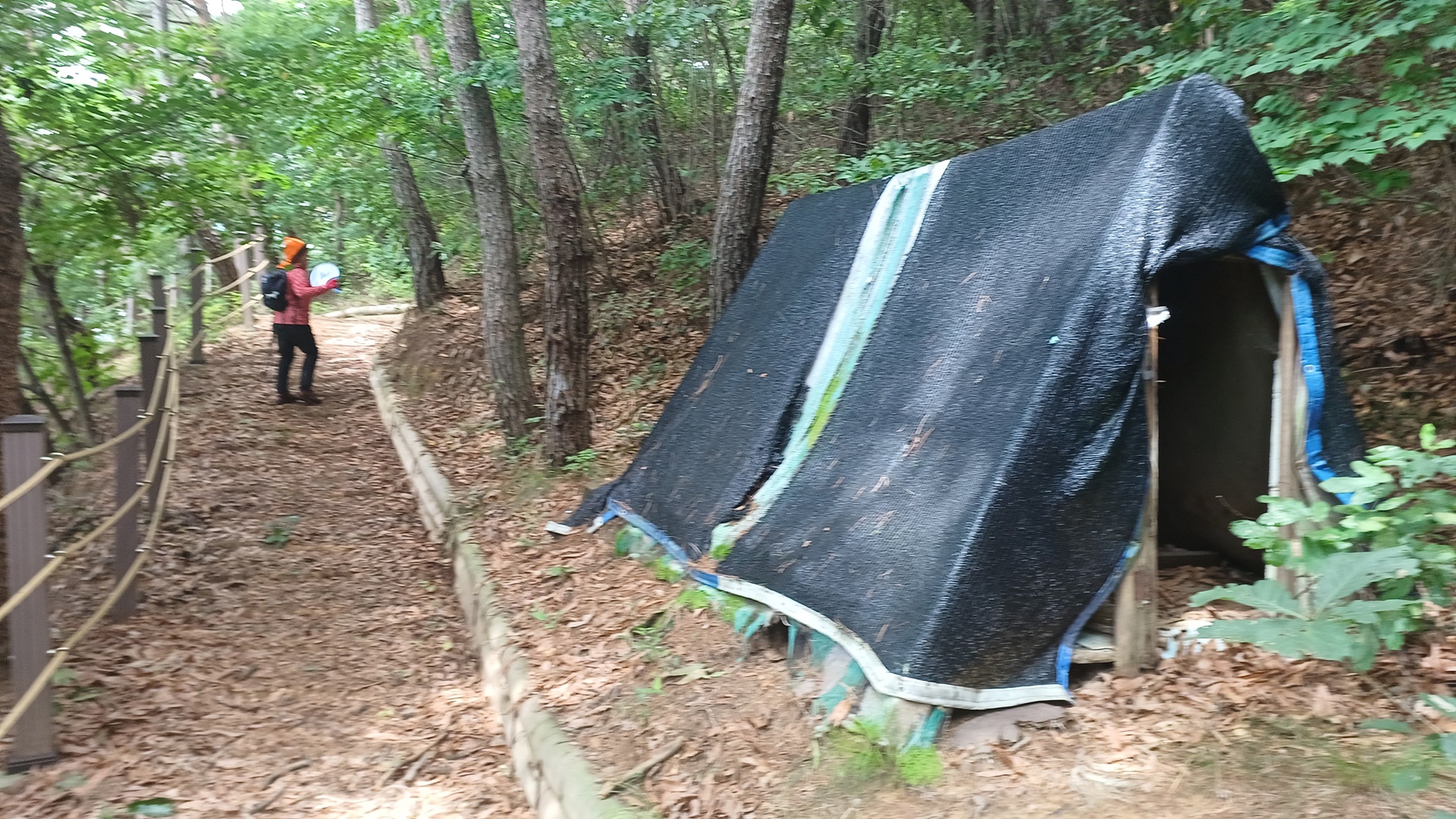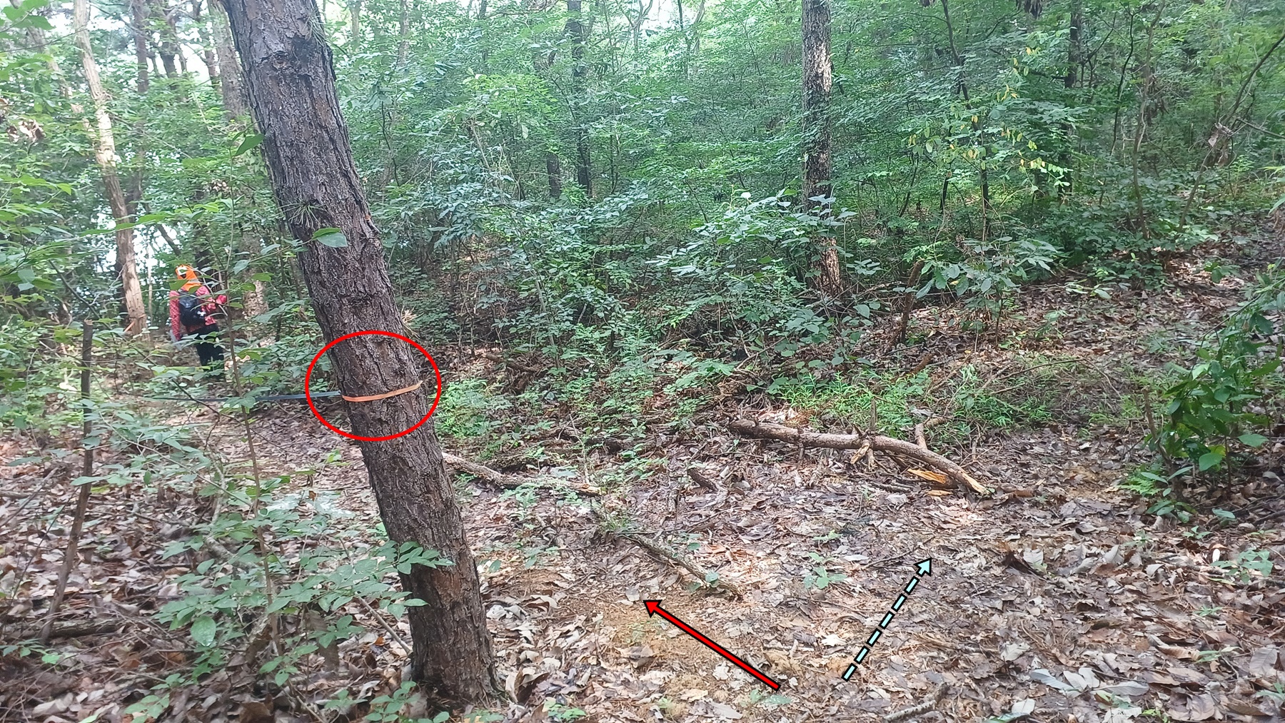 좌측 내리막길로 비닐끈을 따라 가면