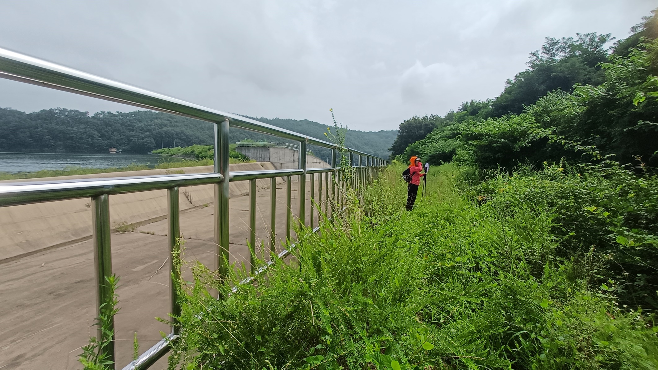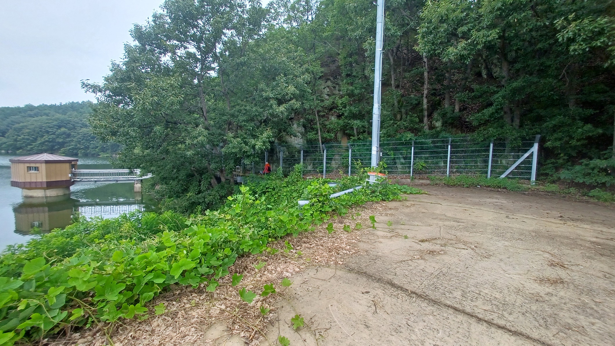 좌측 수문 조절탑이 보이는 방향으로 울타리를 따라가면