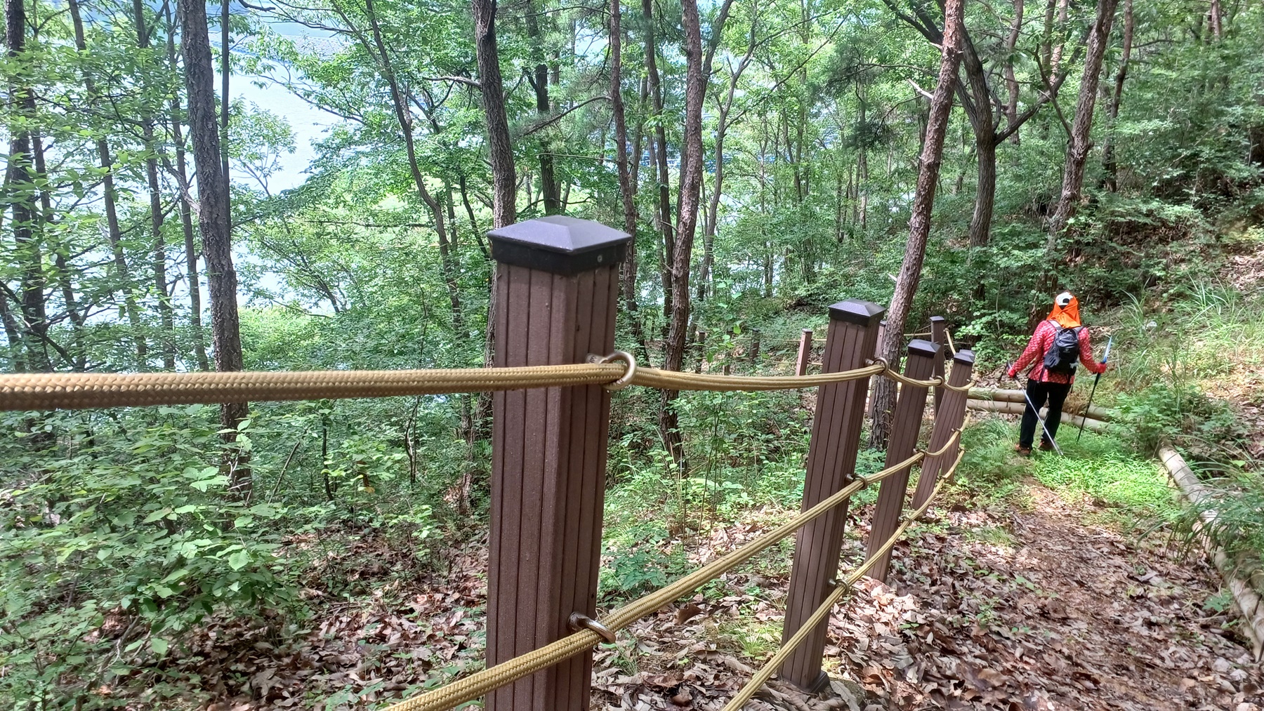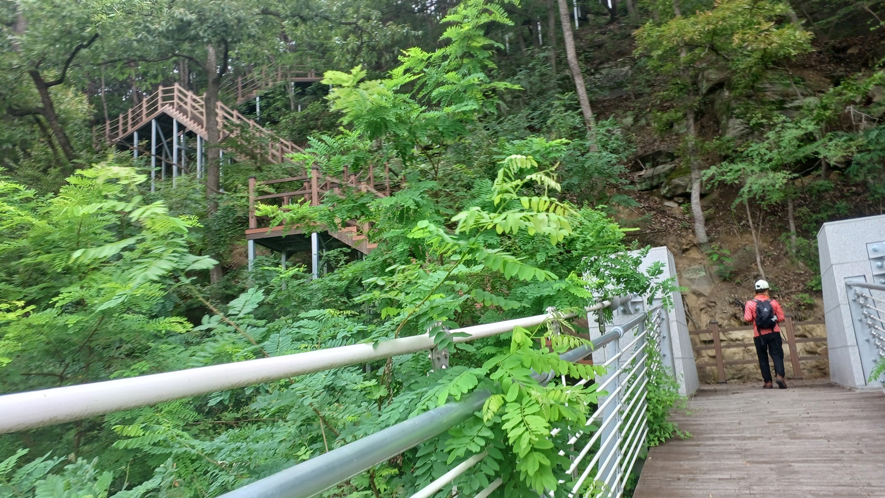 좌측 방향-우측 방향으로 오르막 데크 계단을 오르다 뒤돌아 보면