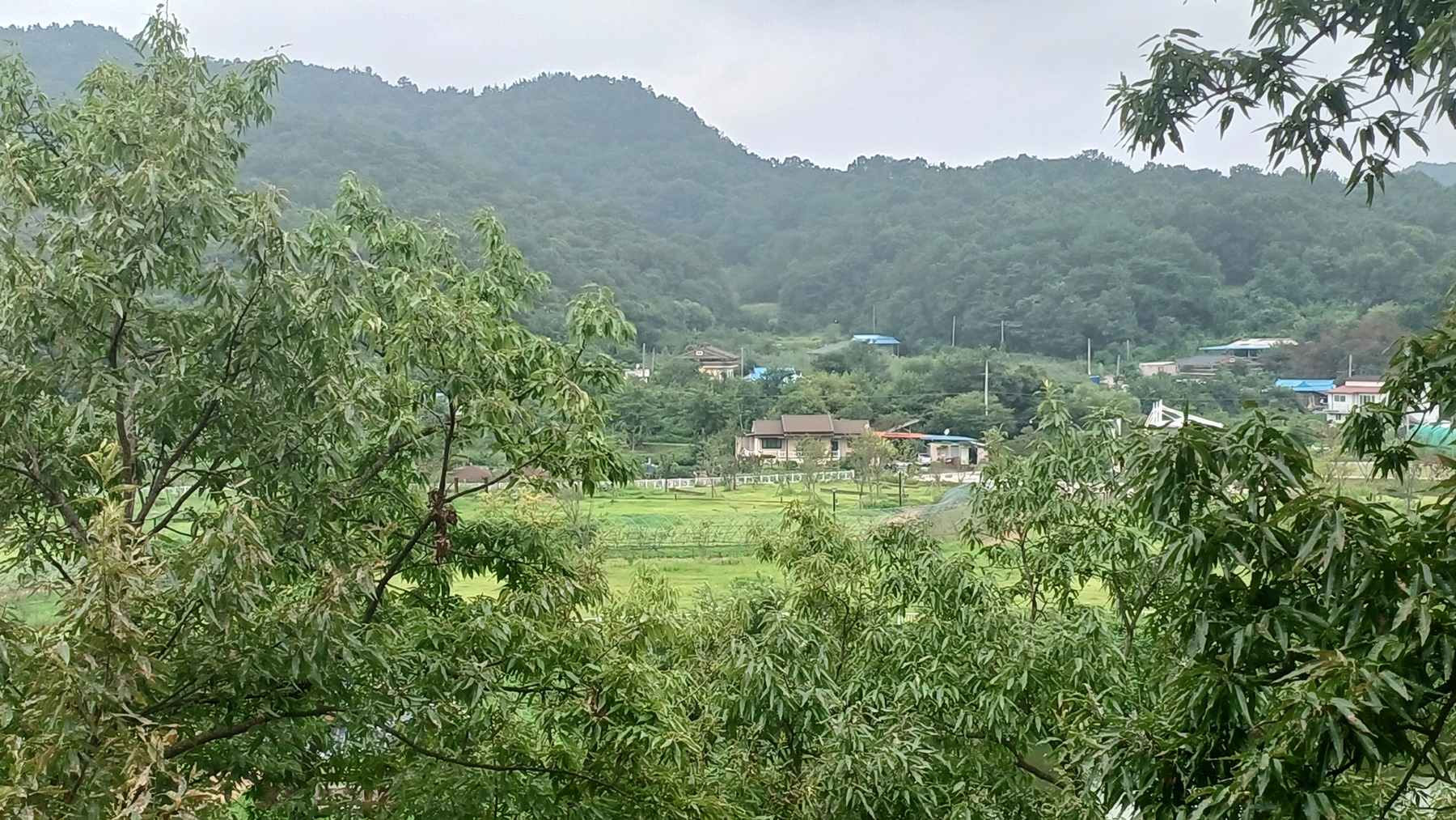 더문 더문 떨어진 청산리 마을 가옥들이 조망되고