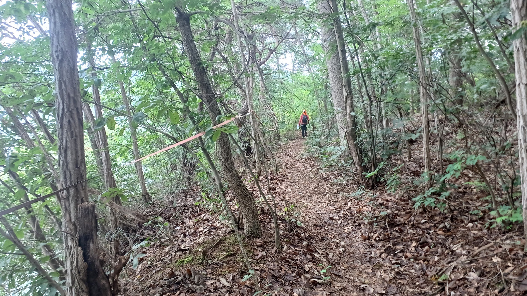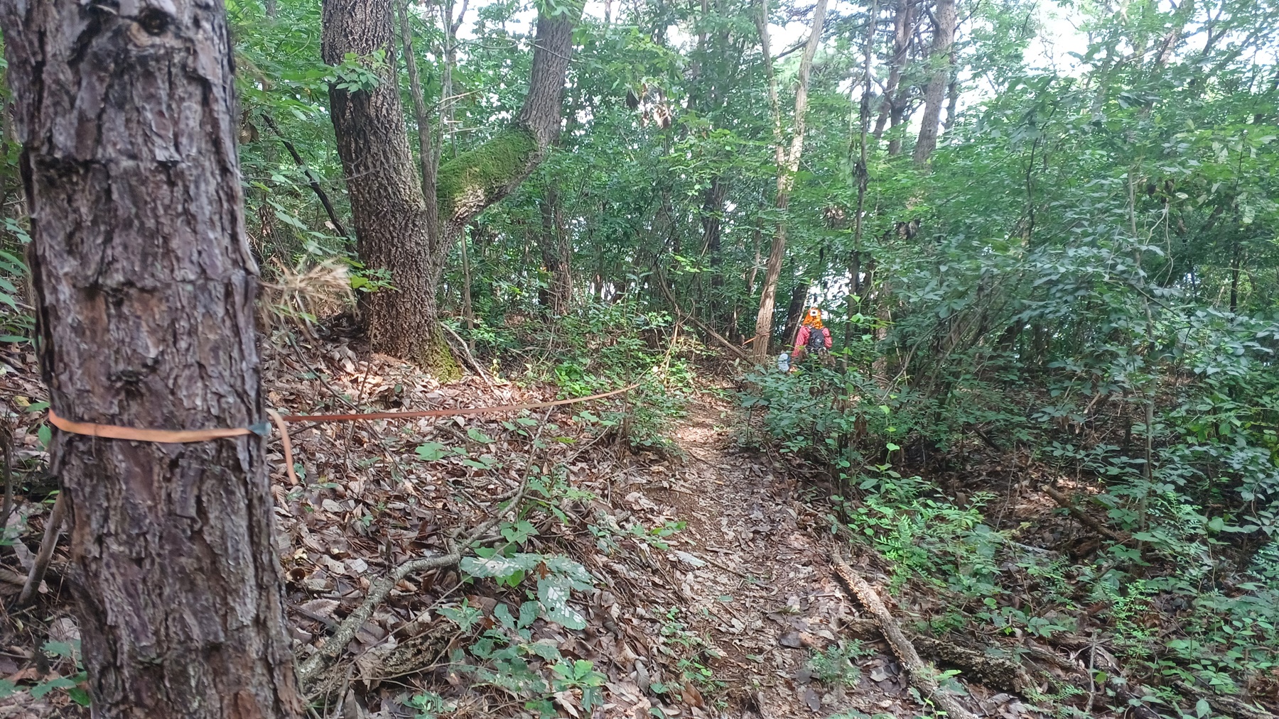 내리막길에 나무에 비닐끈이 달린 능선 삼거리 갈림길이 나온다.