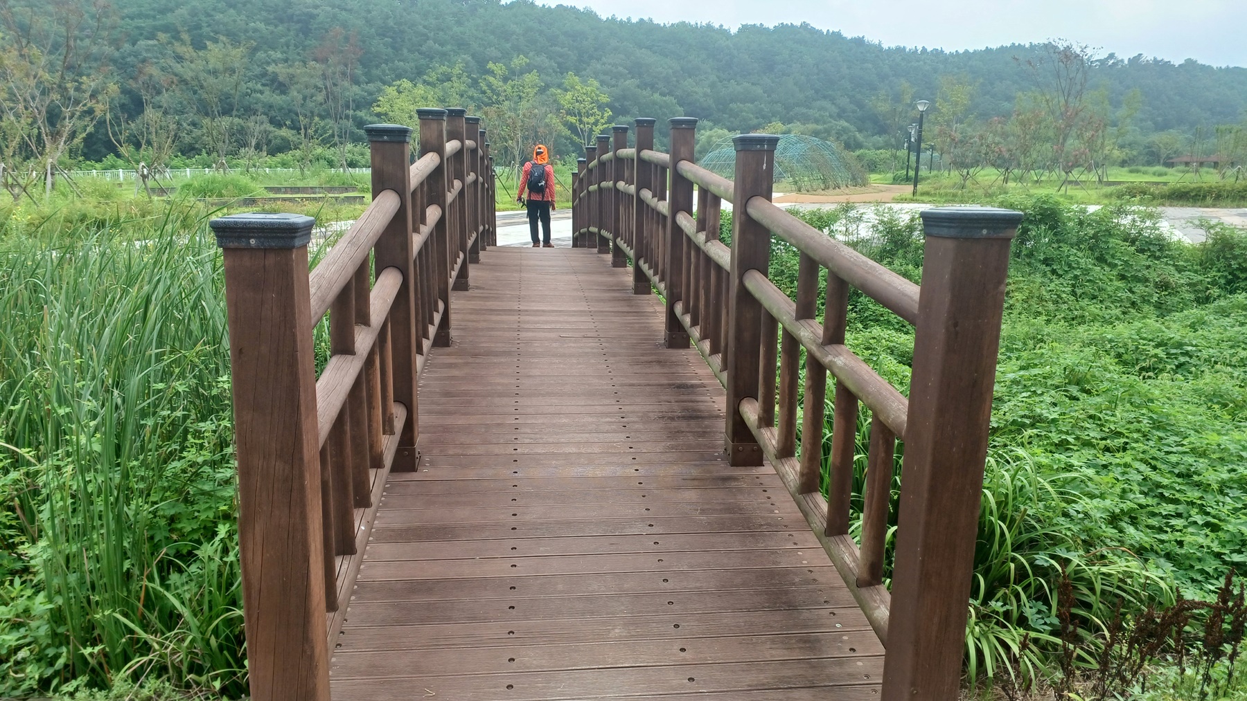 수변 데크 교량을 건너