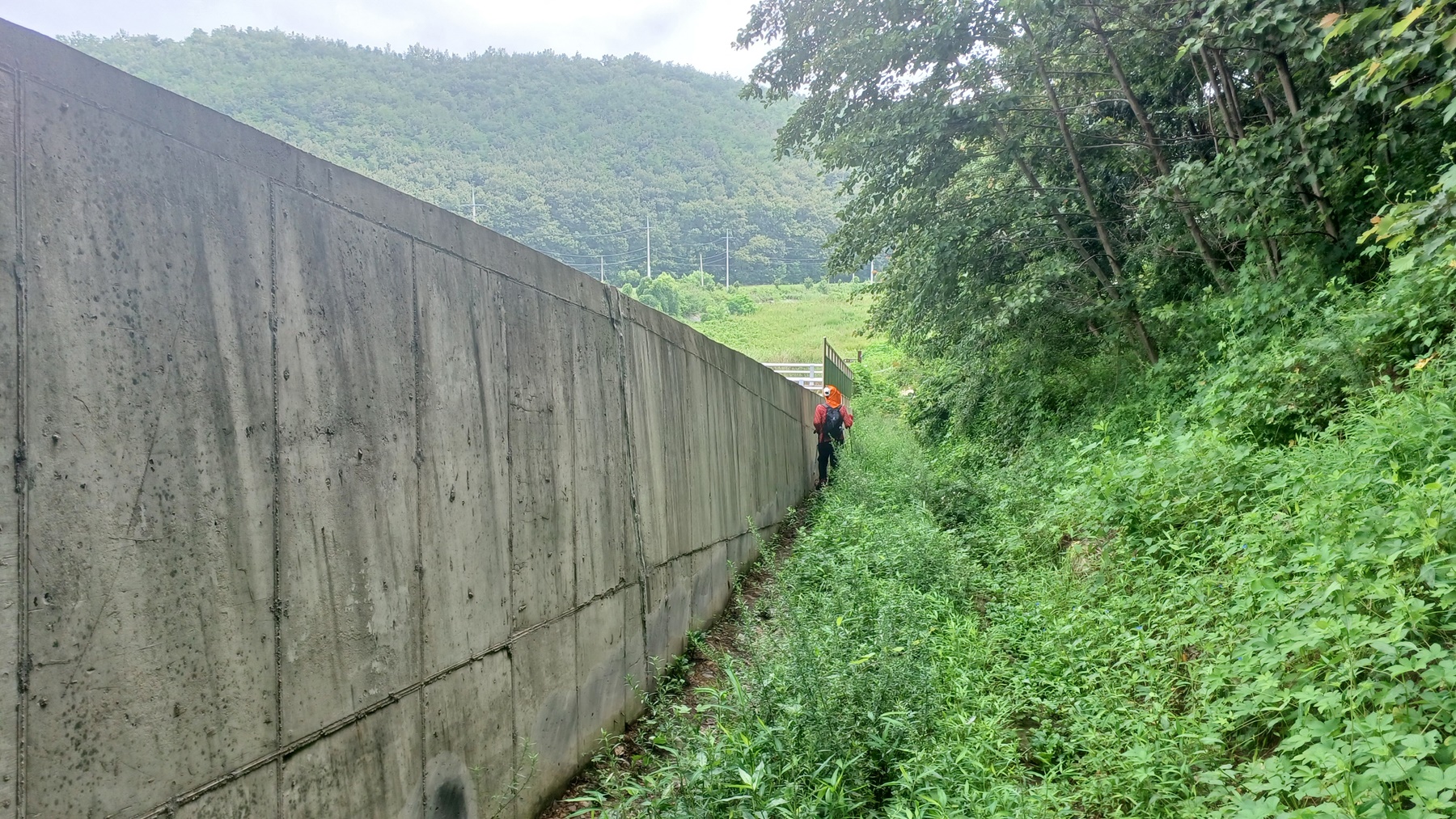 수풀이 우거진 철책 둘레길을 따라가