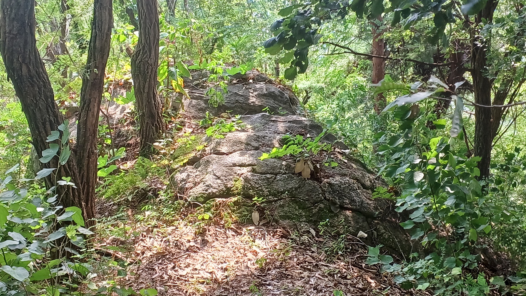 좌측 내리막길로 50여 m 내려가니 간 모양의 간바위에 도착 한다.