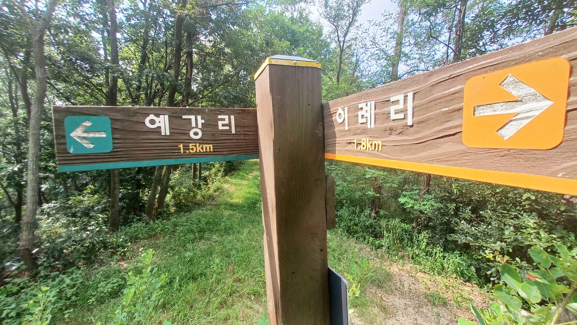 예강1리 마을 회관-분리 수거장/안내도-다리-예강1리 노인정-이정표(안내도)/산길 초입-초원 아파트 갈림길 이정표