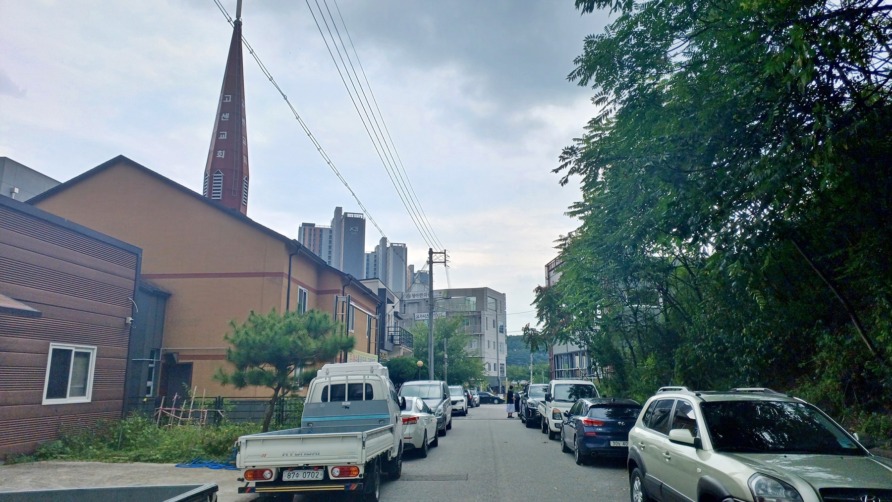 고센 교회 건물 옆을 지나