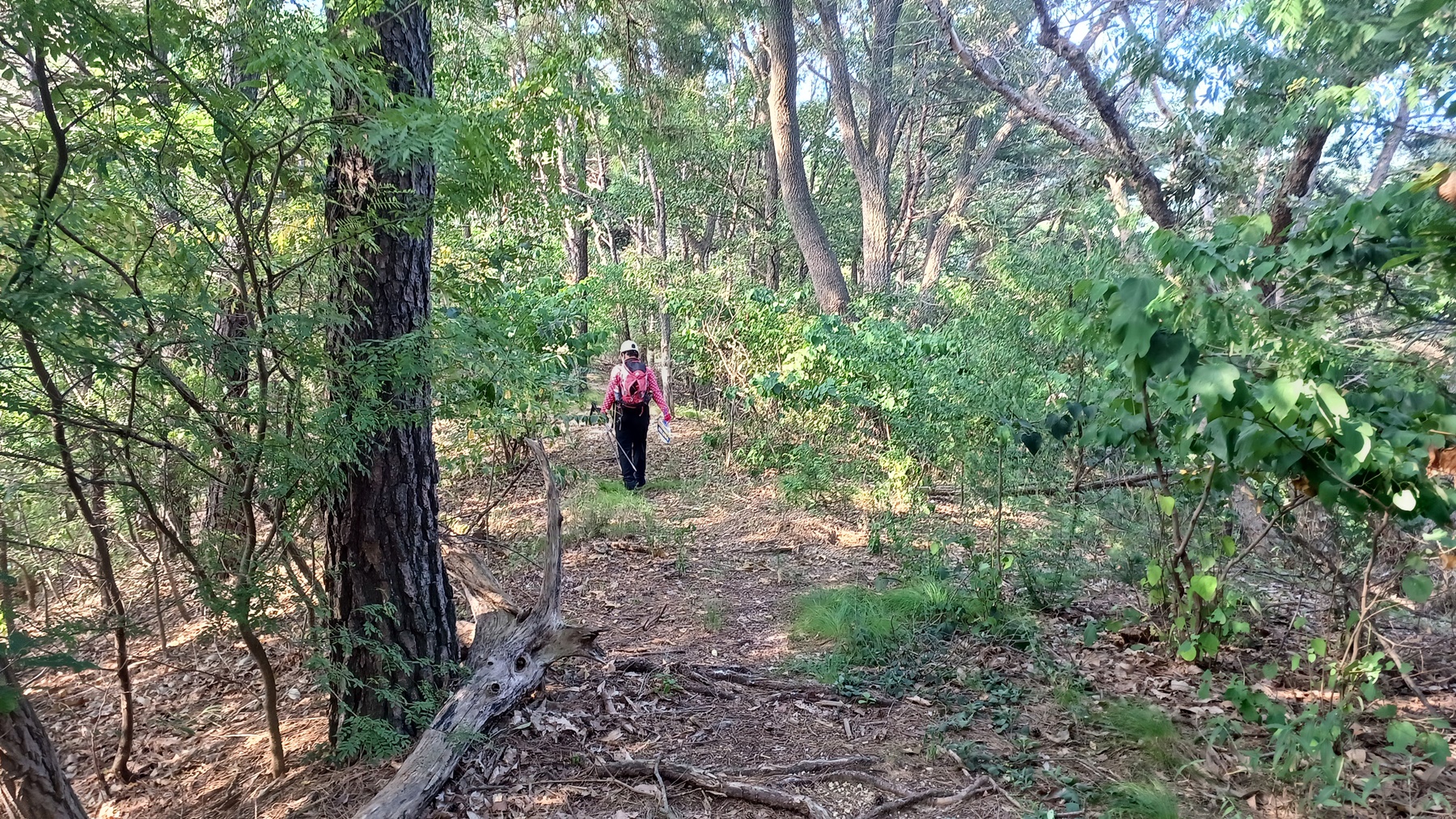 평탄한 능선길을 따라가다 안부에 내렸다