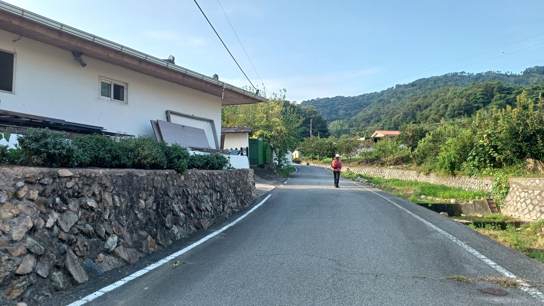 경로당을 지나 하천을 따라 마을길로 들어가면