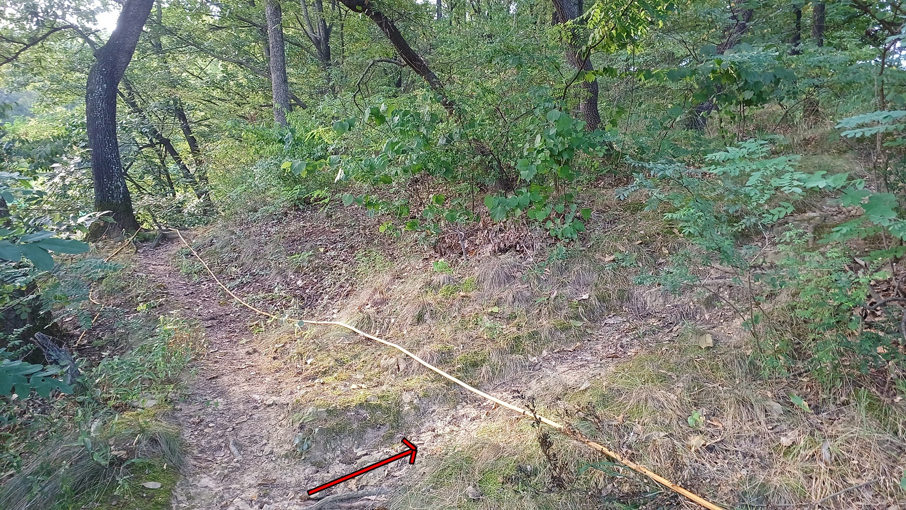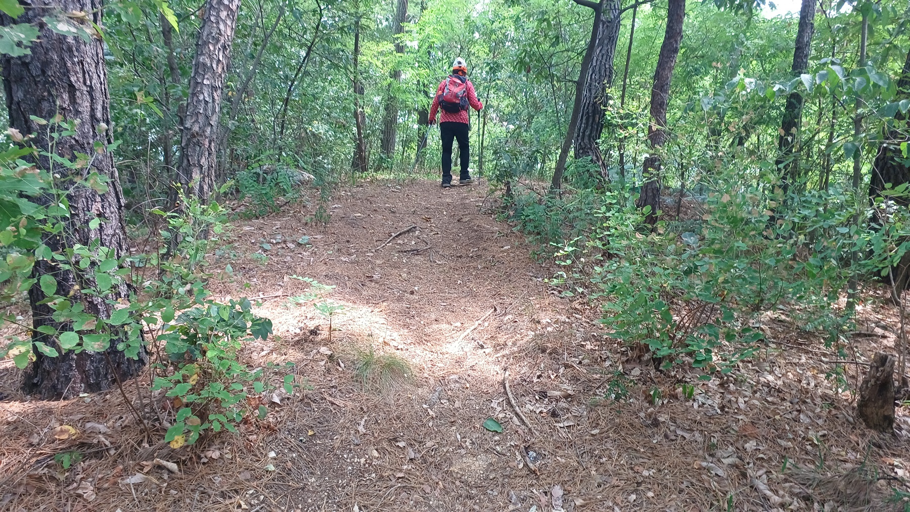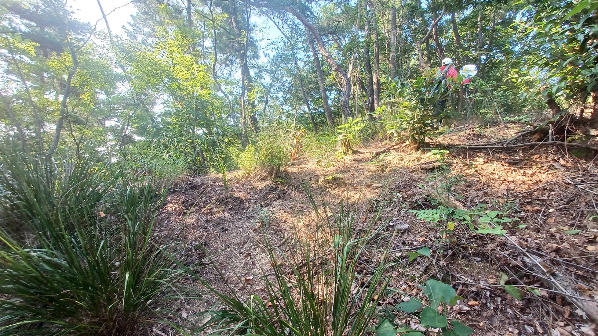 능선으로 가는 갈림길에서 우측 산사면길을 따라 내려가면