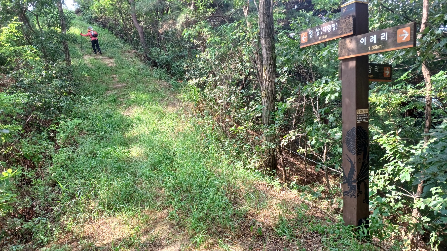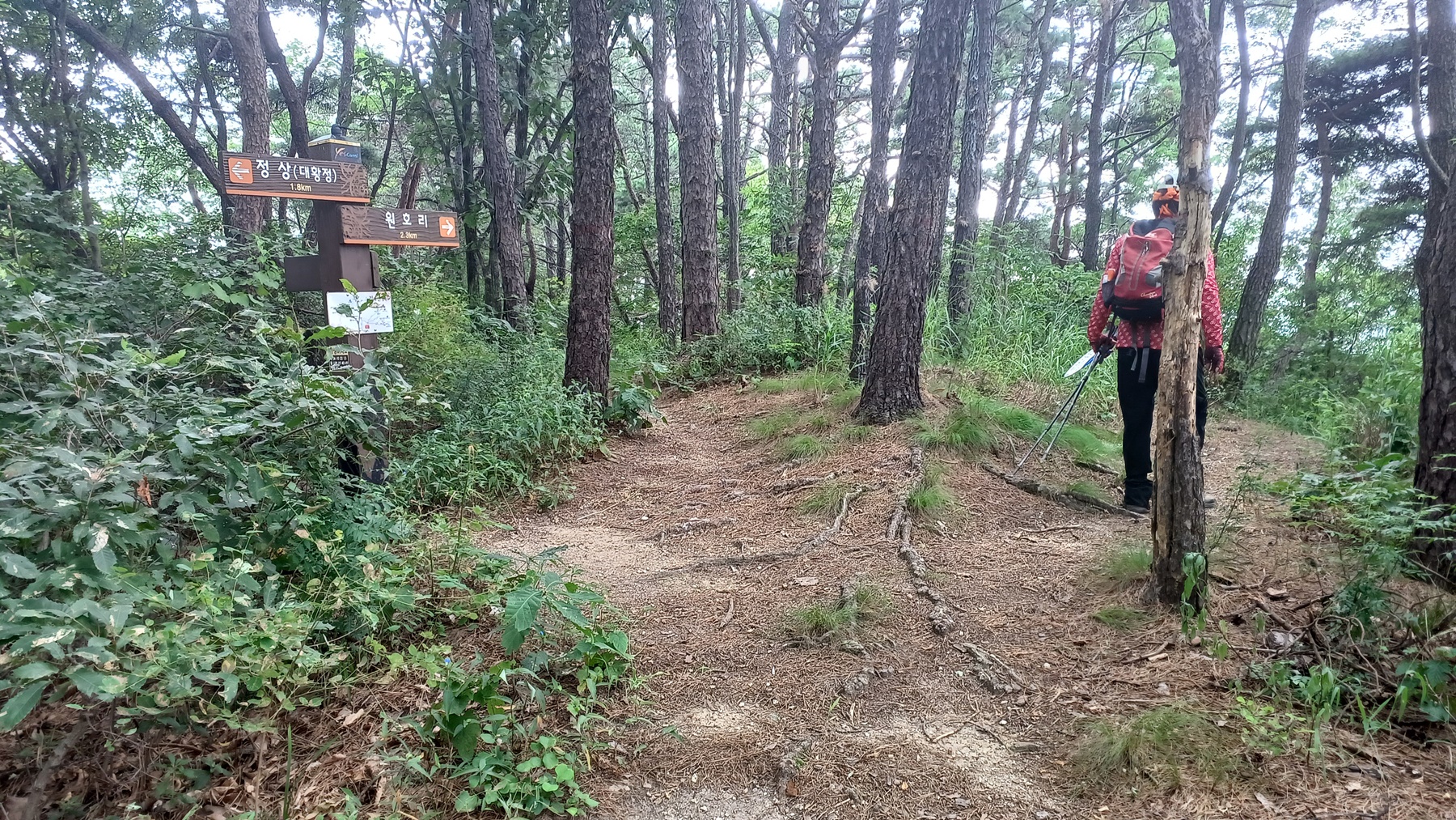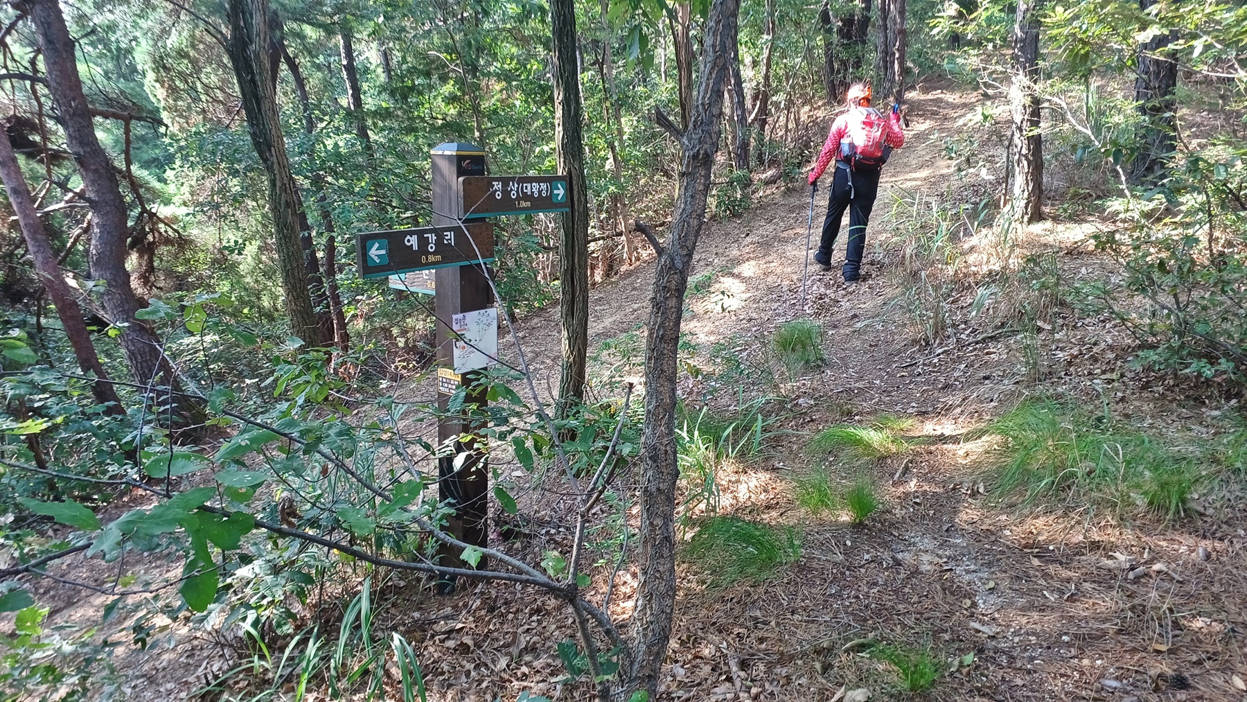 이정표(정상/대황정 1.7km-산림욕장/약수터/체육시설 0.5km)와
