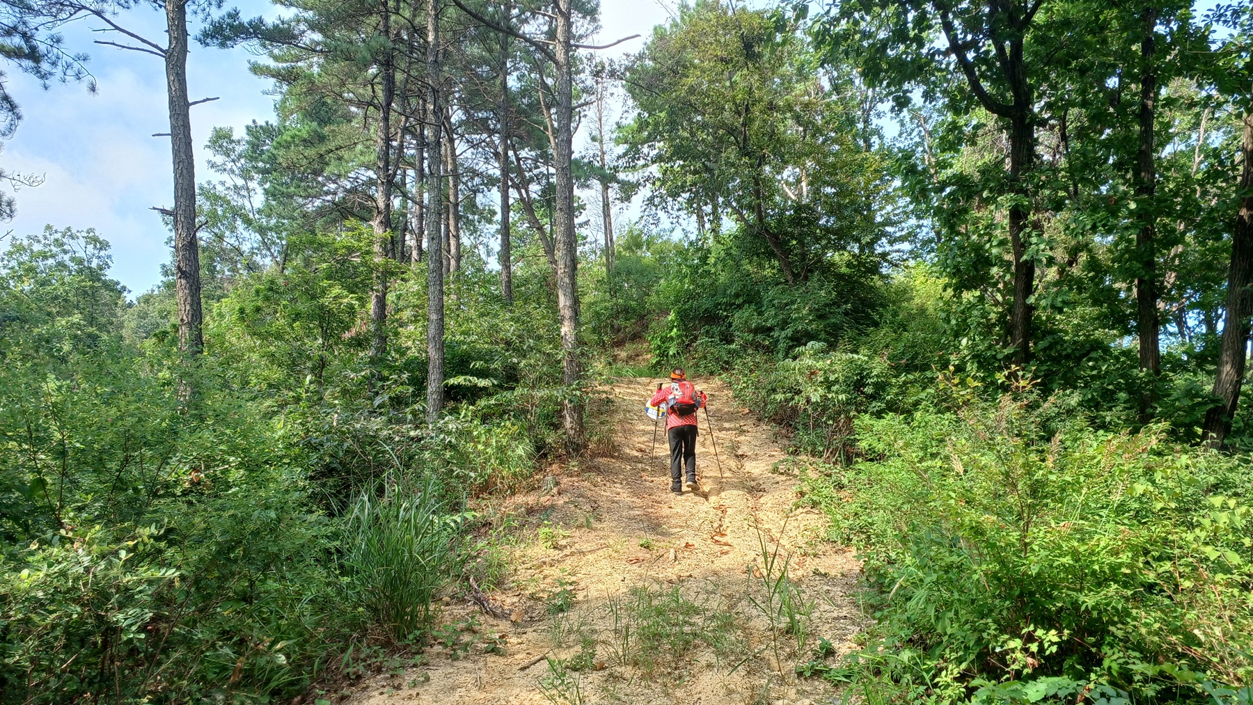 공터 위로 하늘이 훤히 보이는 능선길을 오르면