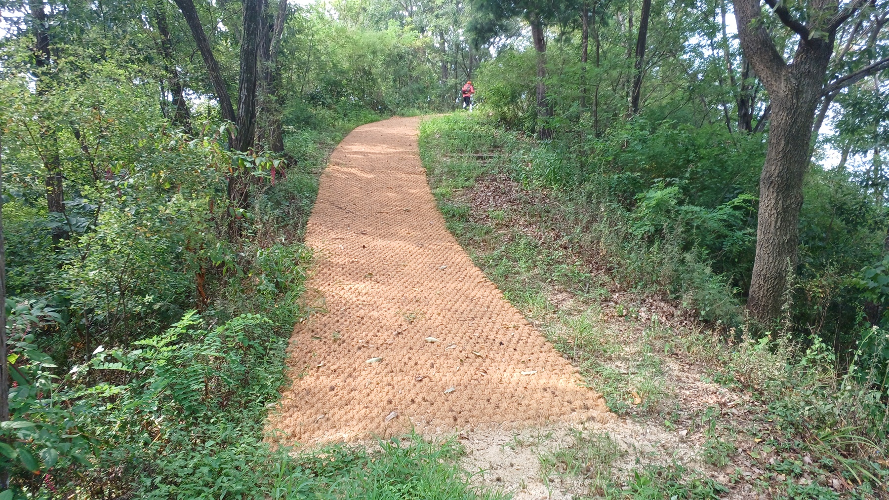 좌측 정상 방향으로 새로 단장한 오르막 매트길을 따라 오르면