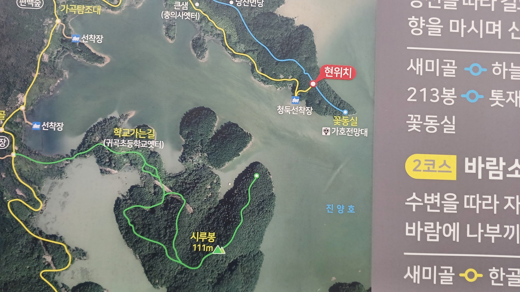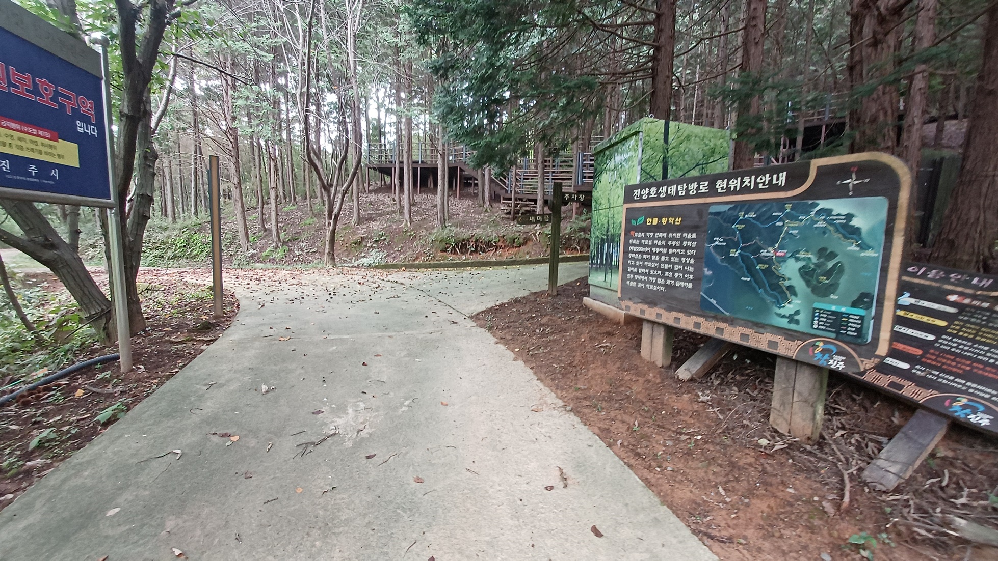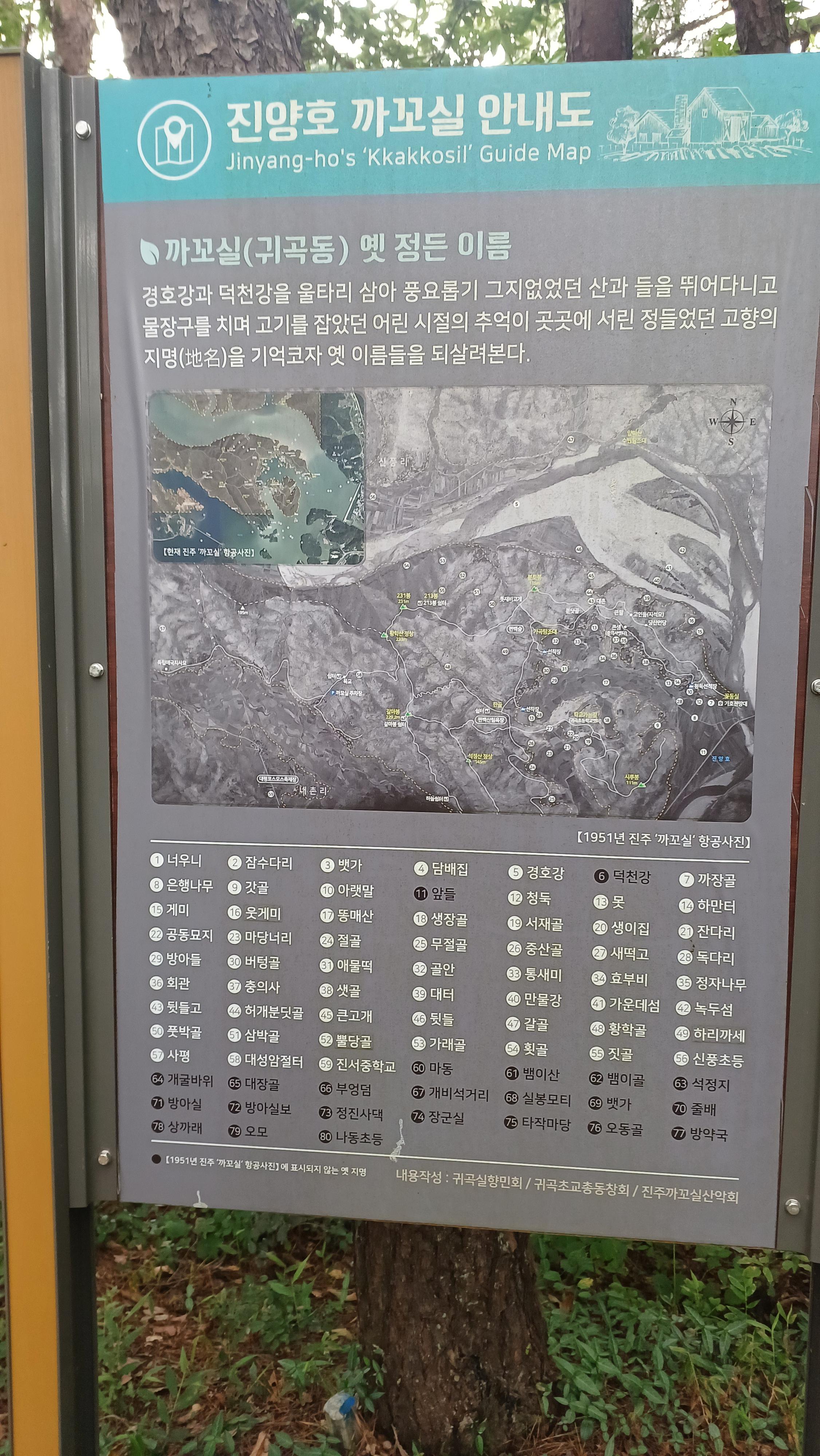 우측 '진양호 까꼬실 속으로의 도보 여행' 안내도와 '진양호 까꼬실' 안내도 방향은