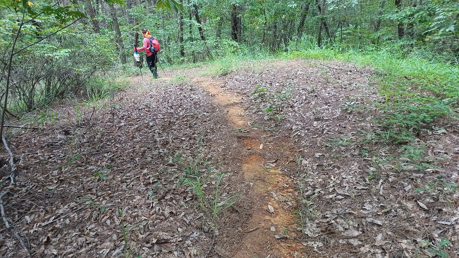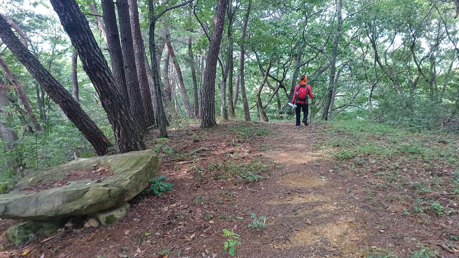 평탄한 숲속 능선길을 따라가면