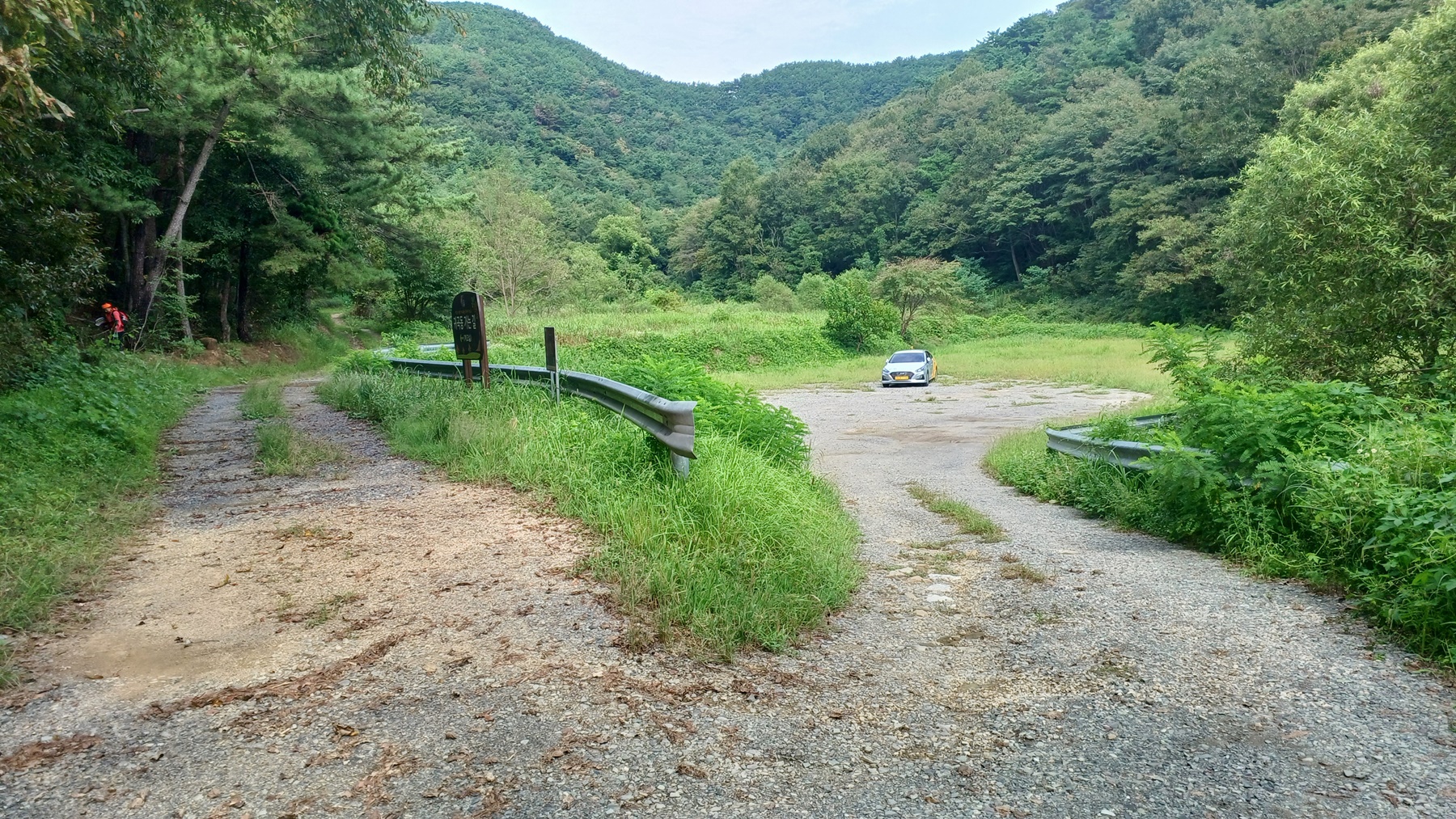 안부 '주차장 갈림길(황학산-갈마봉)'에 도착하여