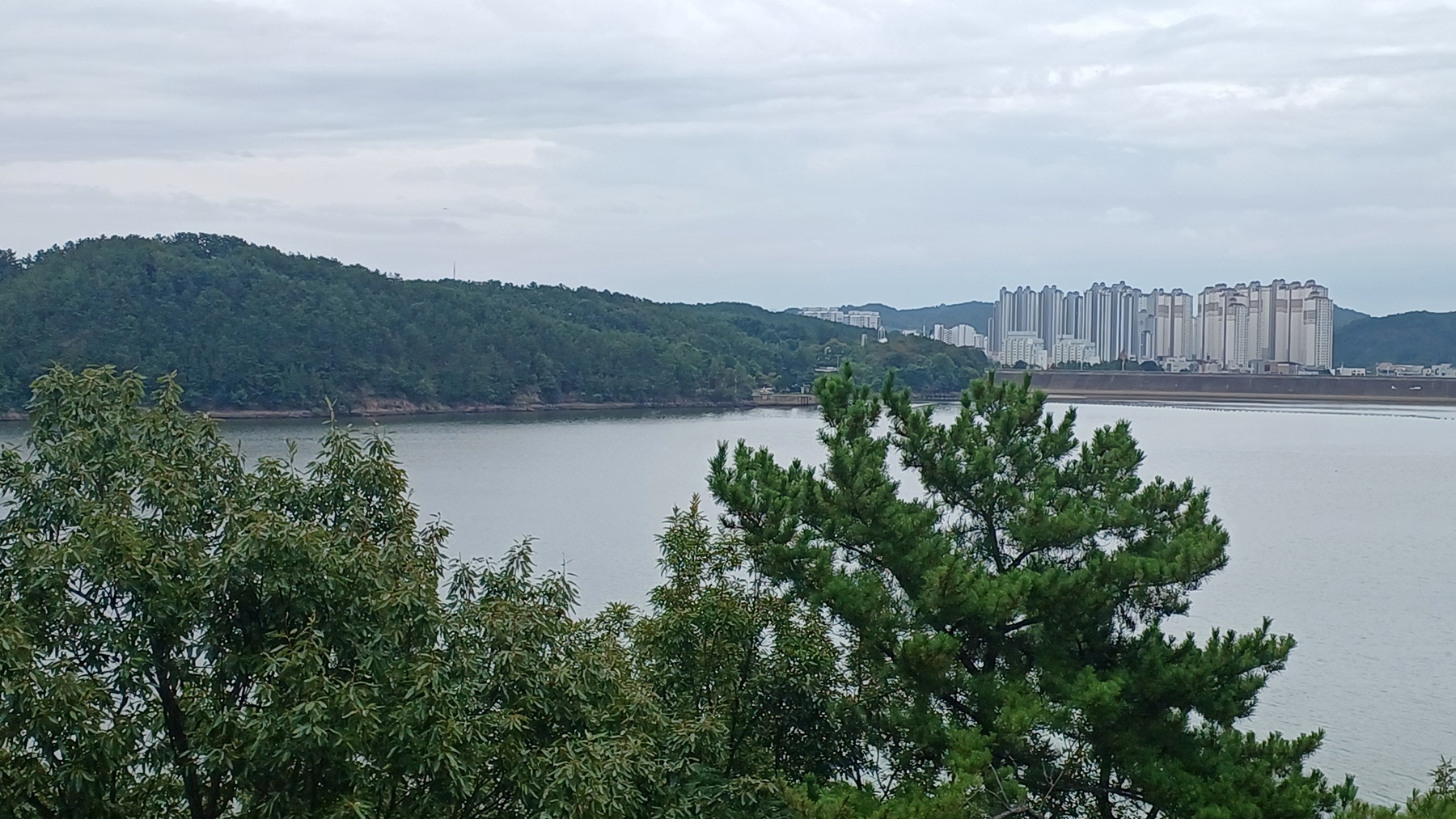 진양호 건너 동산재와 좌측 신풍 종점과 우측 신풍 정류장이 조망되고