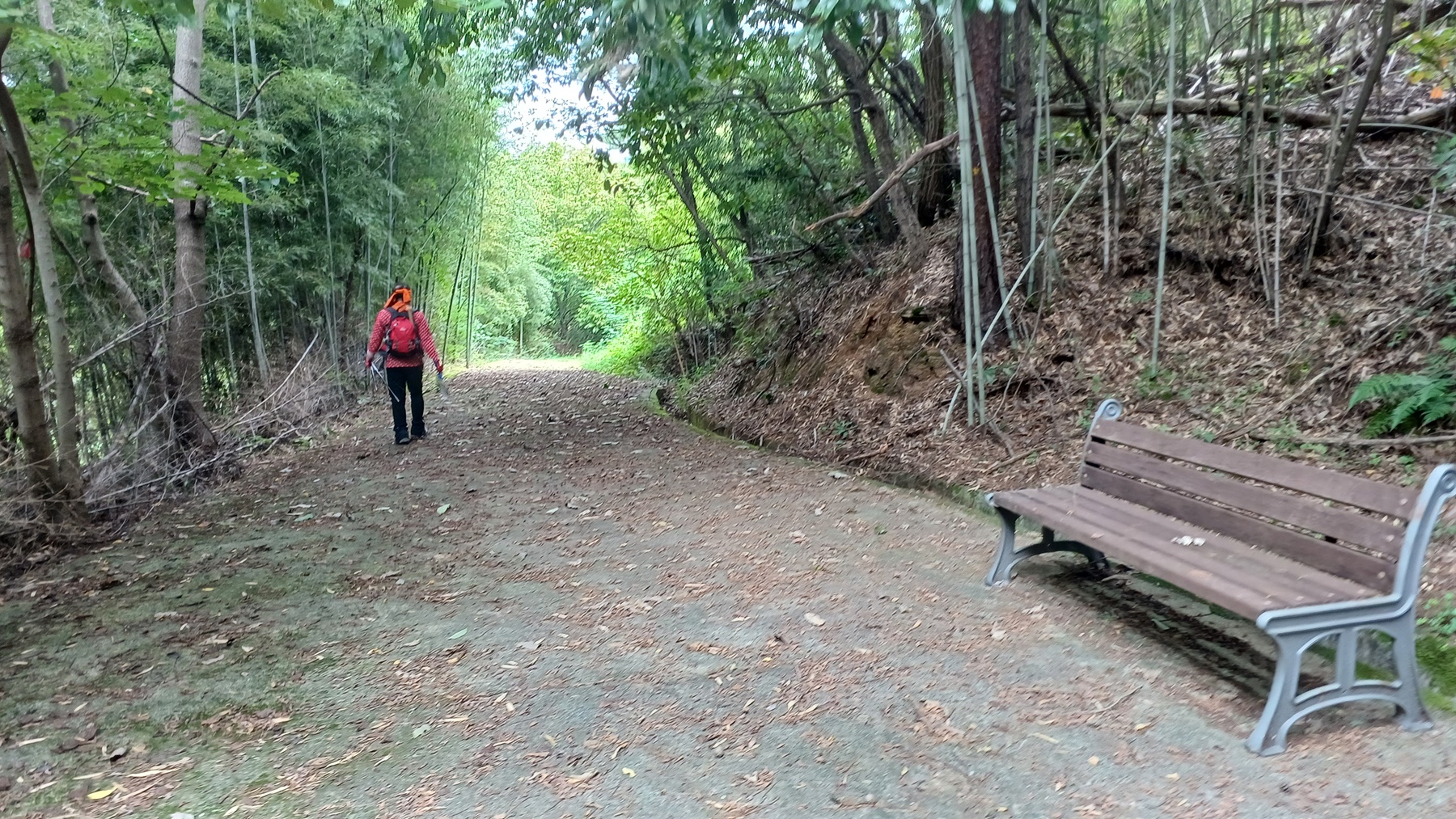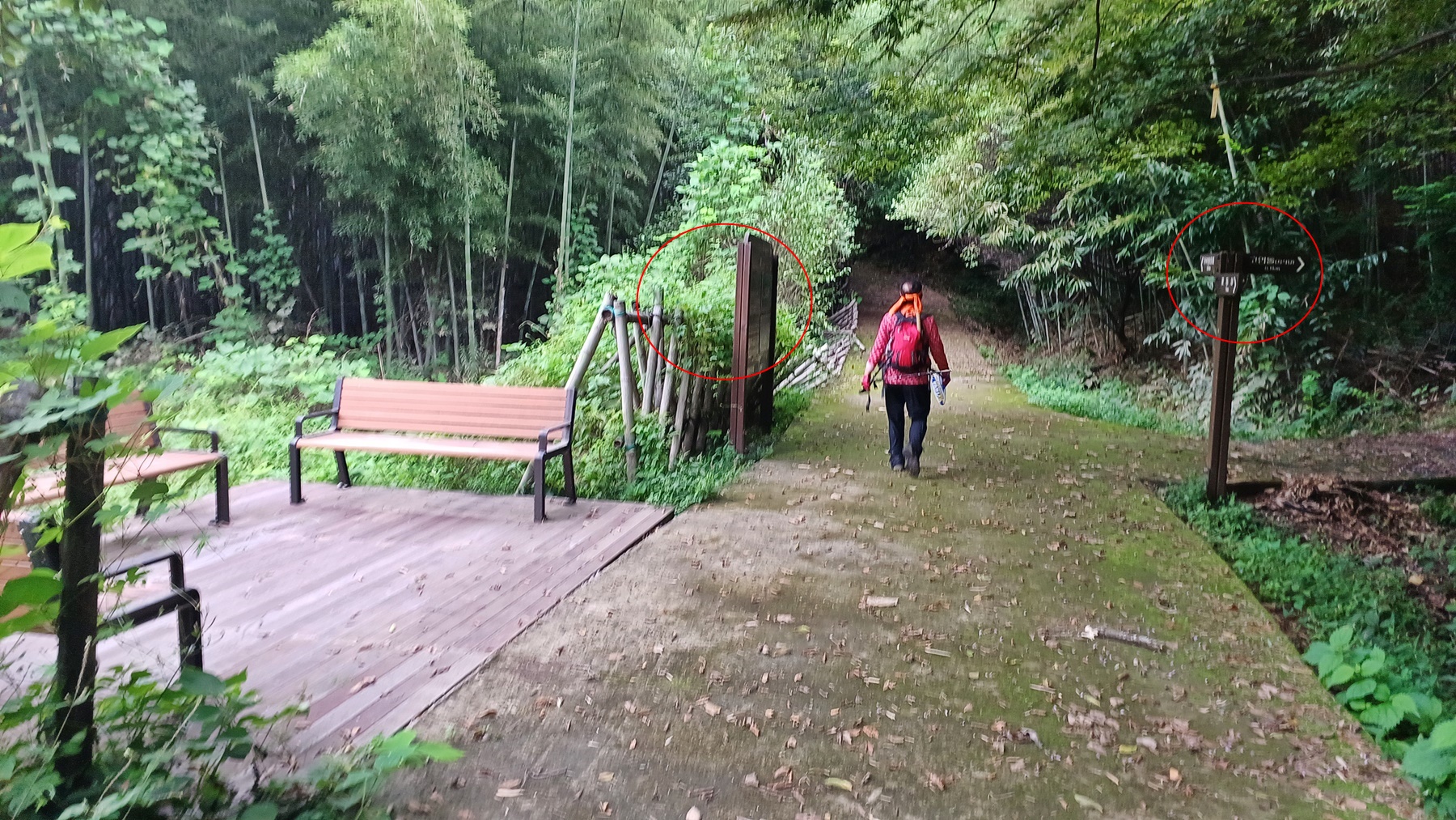 벤치와 대나무 숲길을 지나면