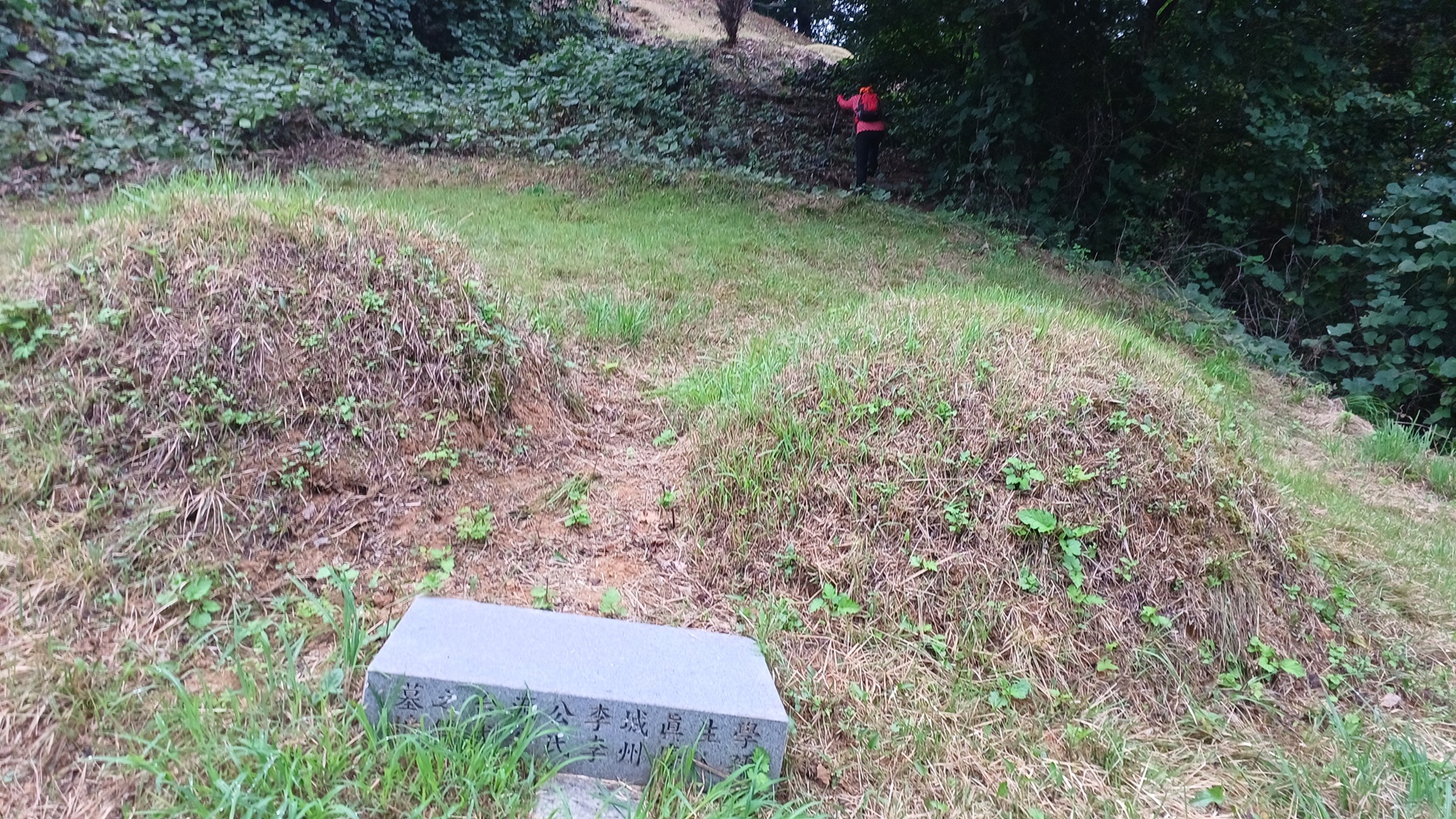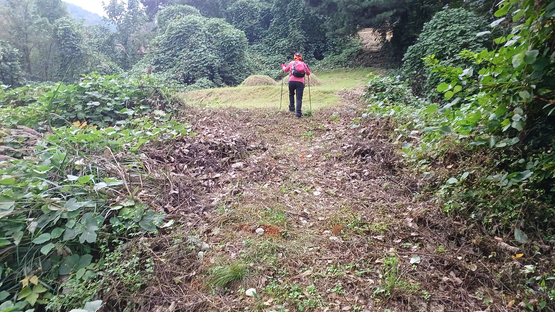 맨 위의 묘소 아래 쌍묘 앞을 지나