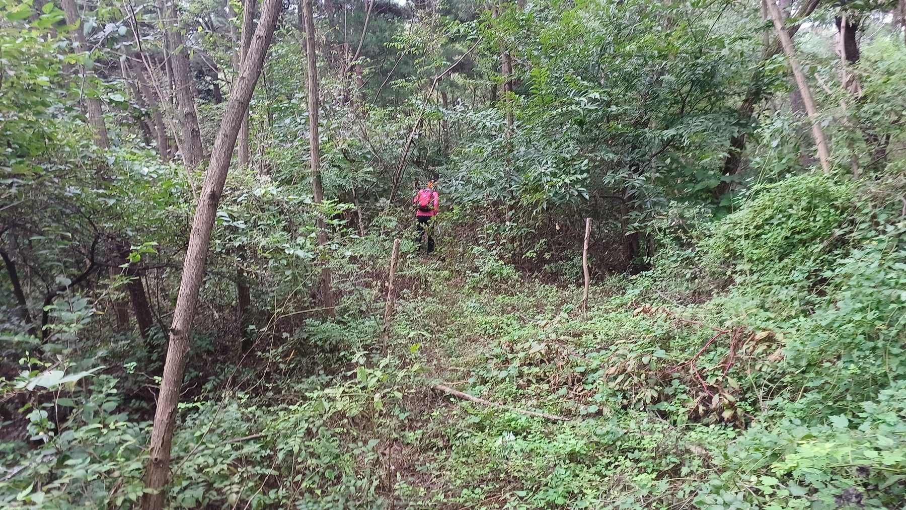 좌측으로 불당골로 하산하는 하산로가 지도상 표기 되어 있으나 잡풀과 잡목으로 인해 구별 하기 힘든다.