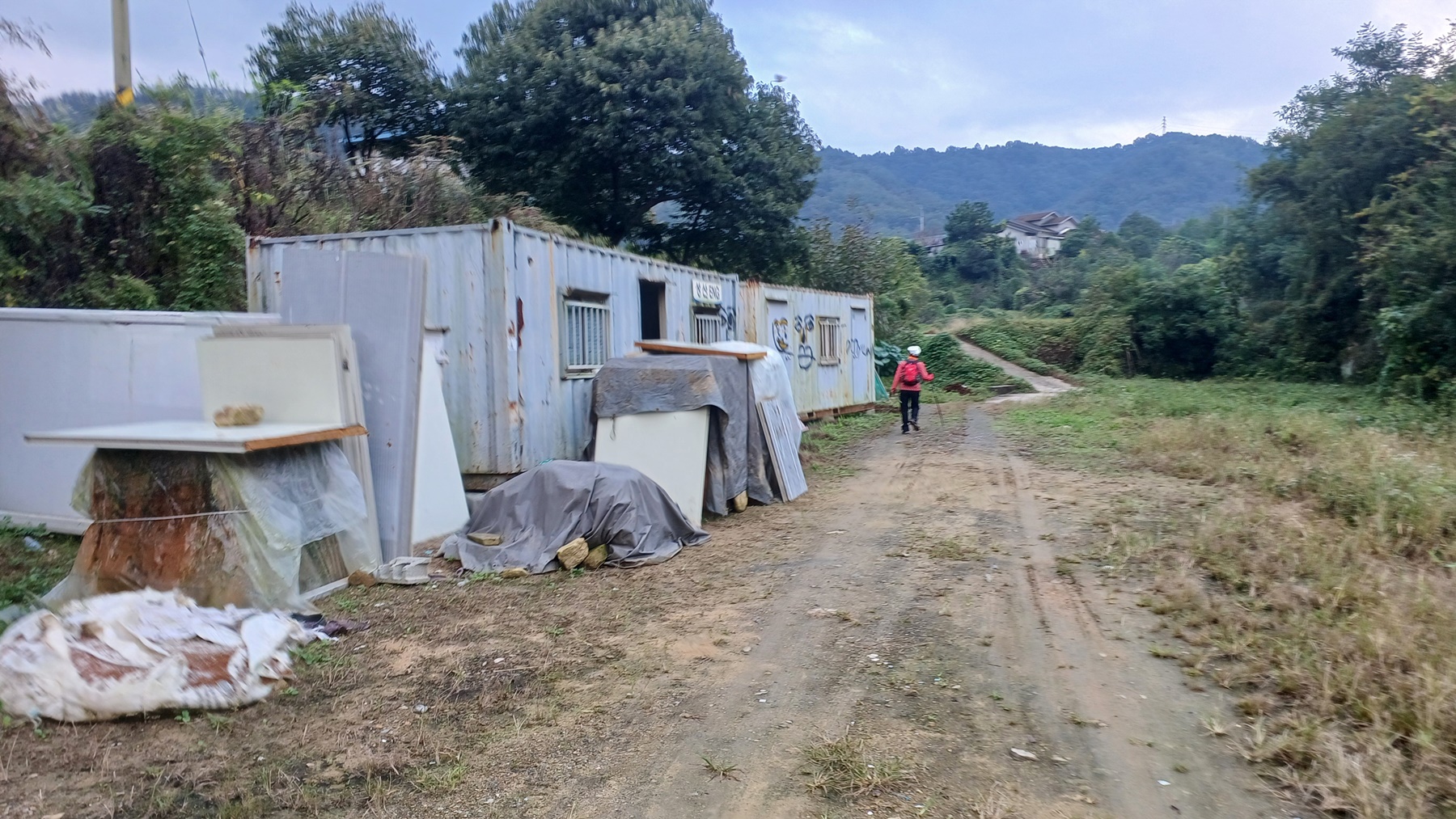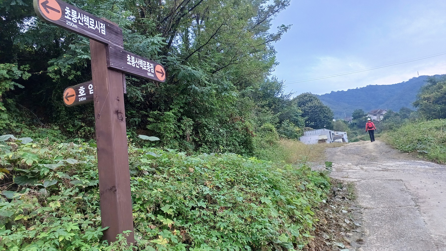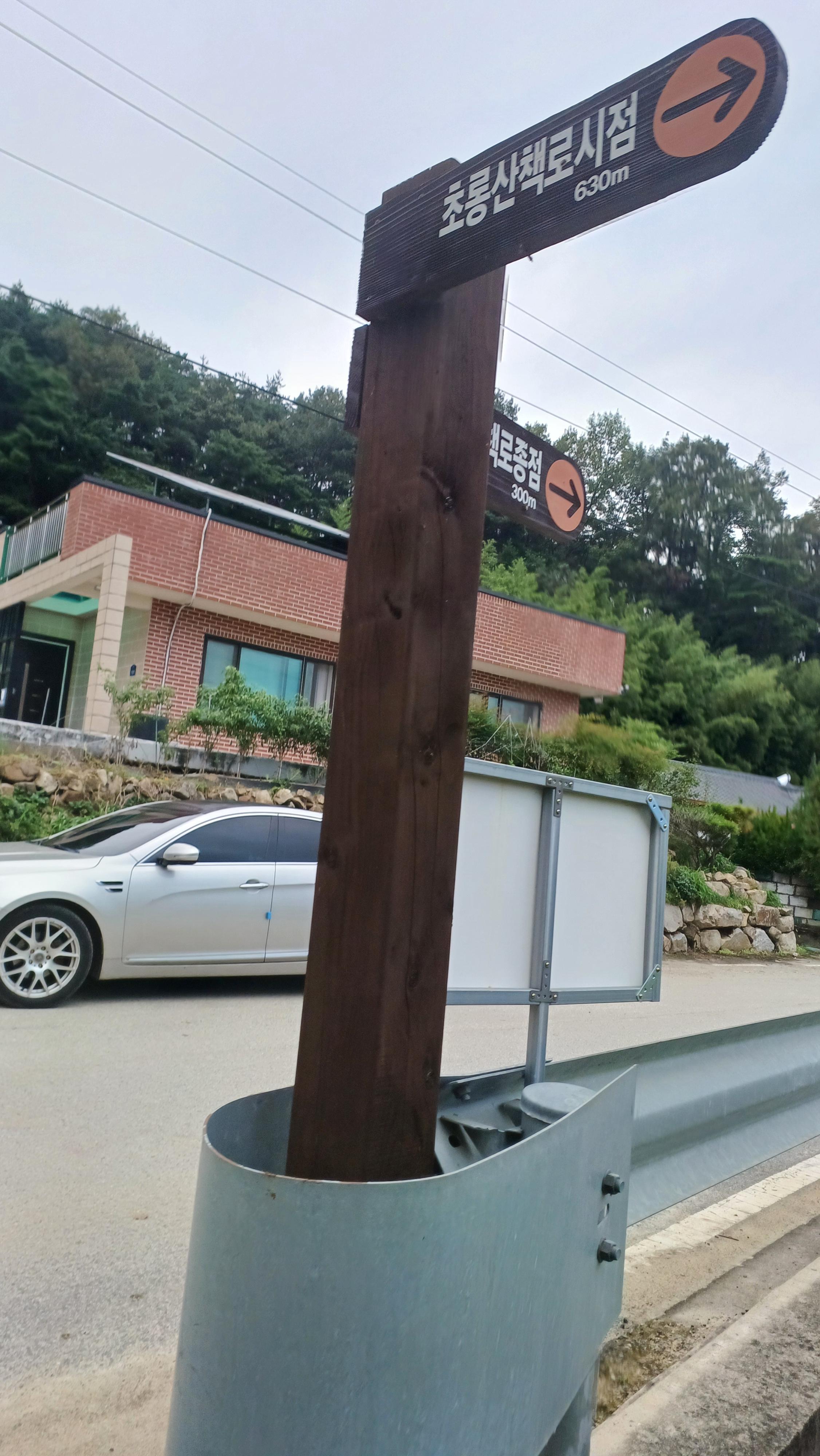 이정표를 지나 콘테이너 박스가 보이는방향으로 직진하여 초롱 산책로 종점으로 가는 방향으로 비포장길을 따라가면