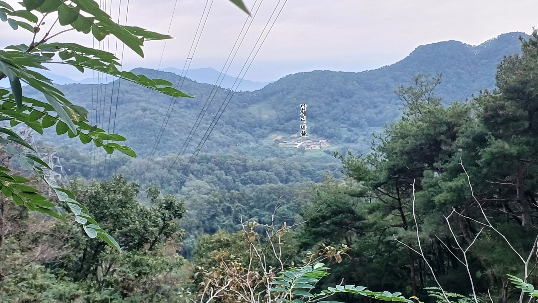 시묘산으로 가는 능선 아래 남계리 마을이 보이고,