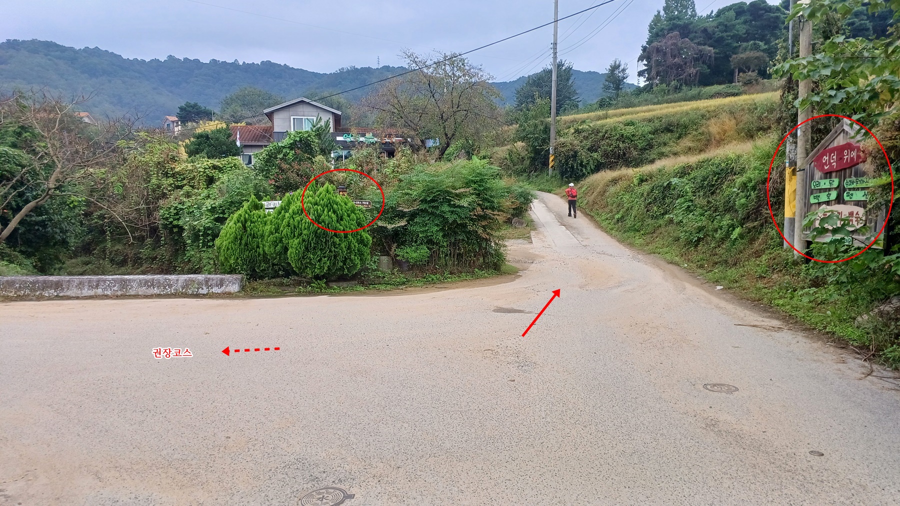 잘룩한 언덕이 보이는 방향으로 포장길을 따라 간다.