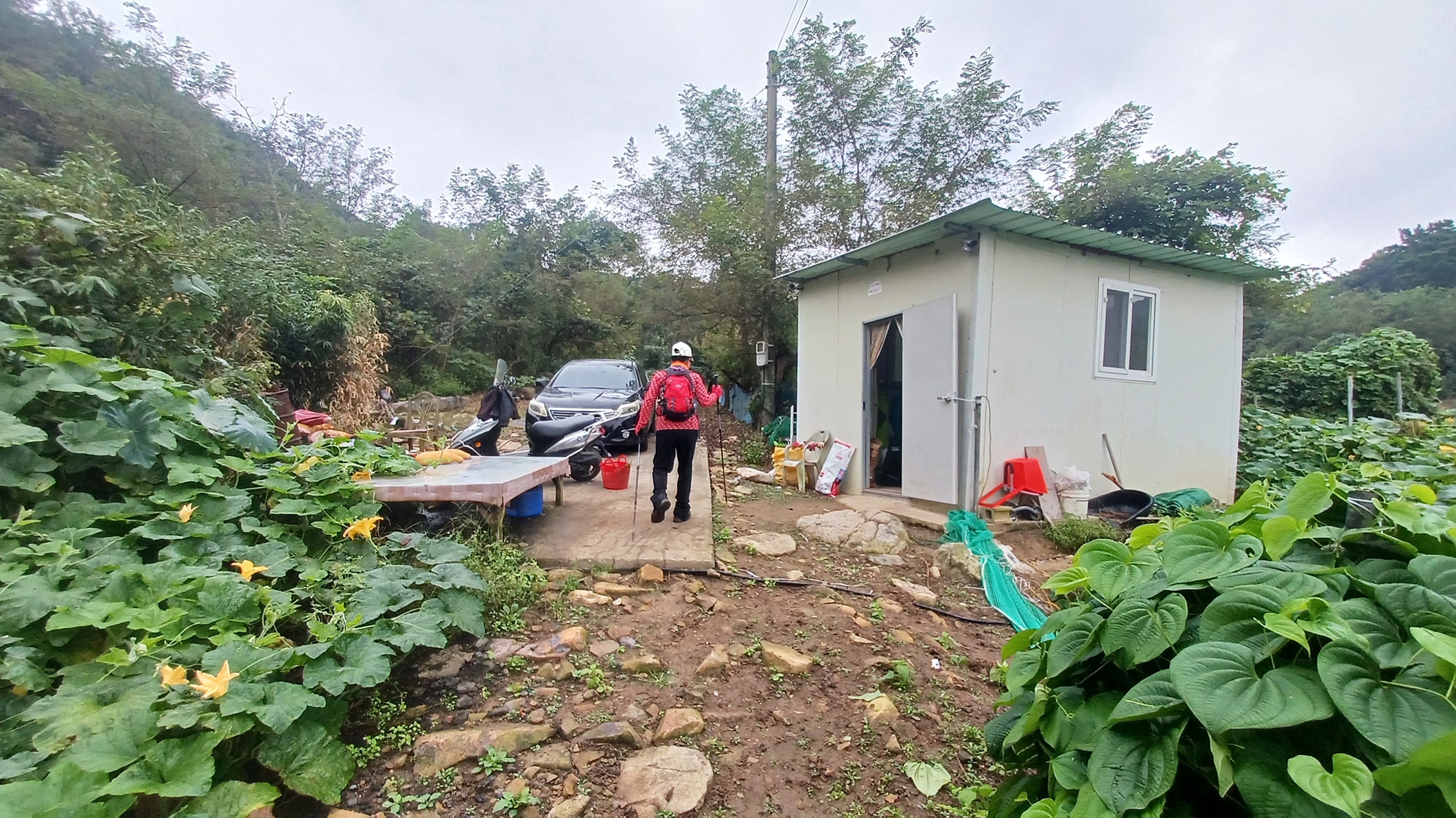 비닐 하우스 문 앞을 지나 텃밭의 울타리를 따라 농막이 보이는 방향으로 가면
