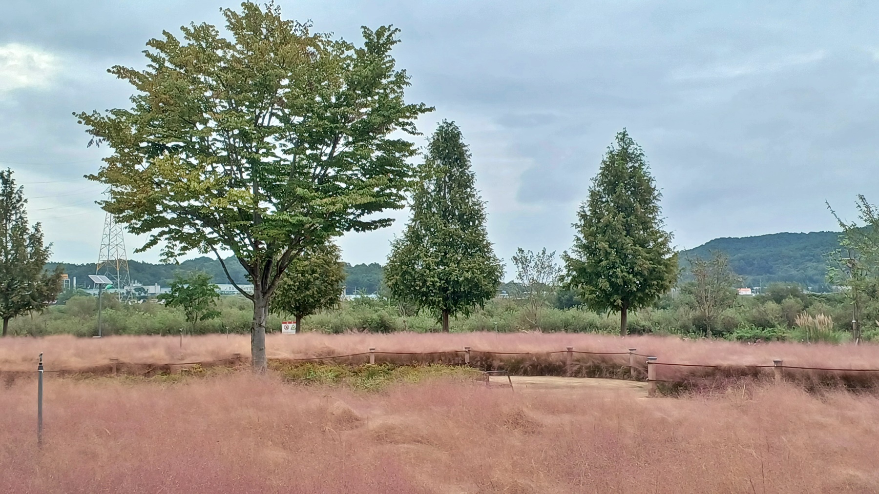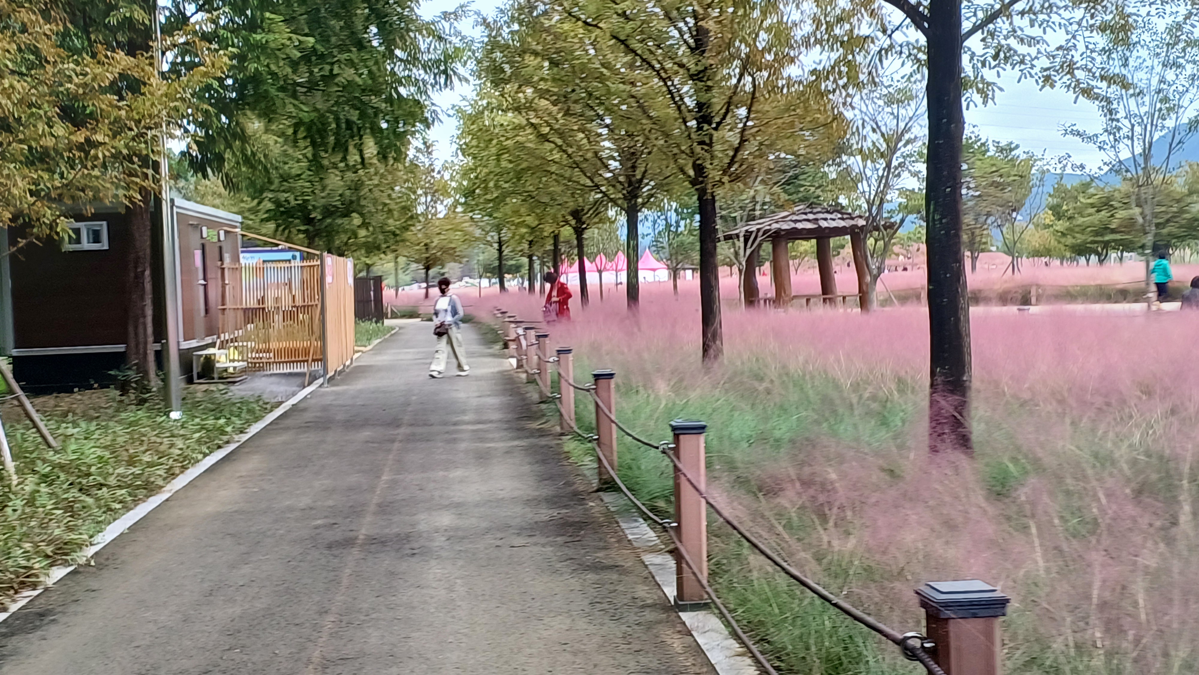 좌측 목책을 따라가는 핑크 뮬리 군락지를 지나