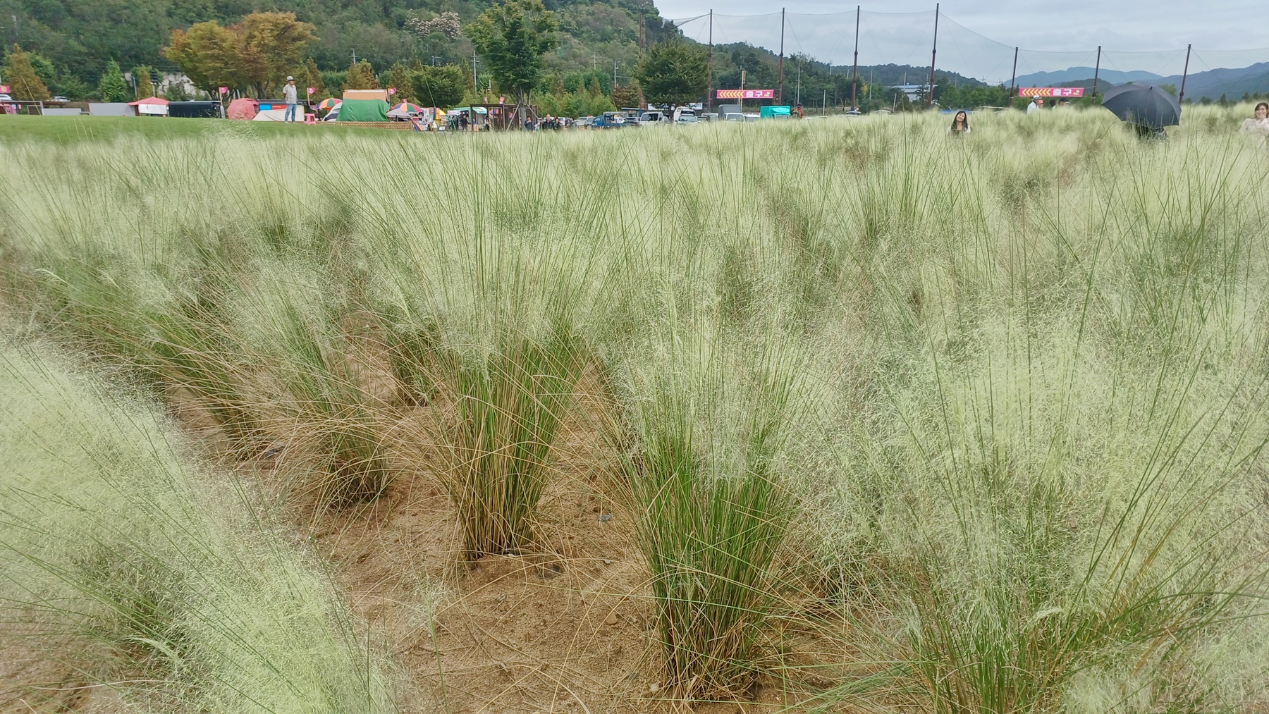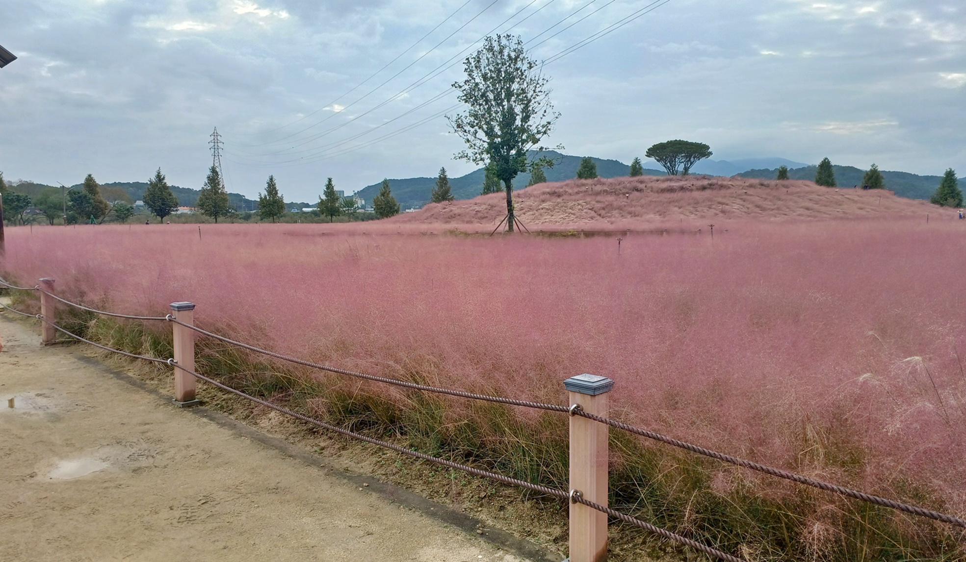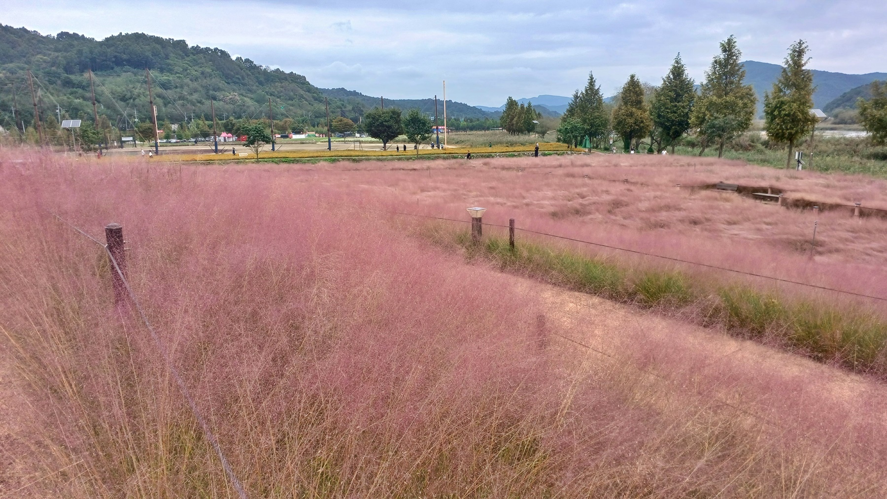 자꾸만 눈이 가는 핑크 뮬리 군락지다.