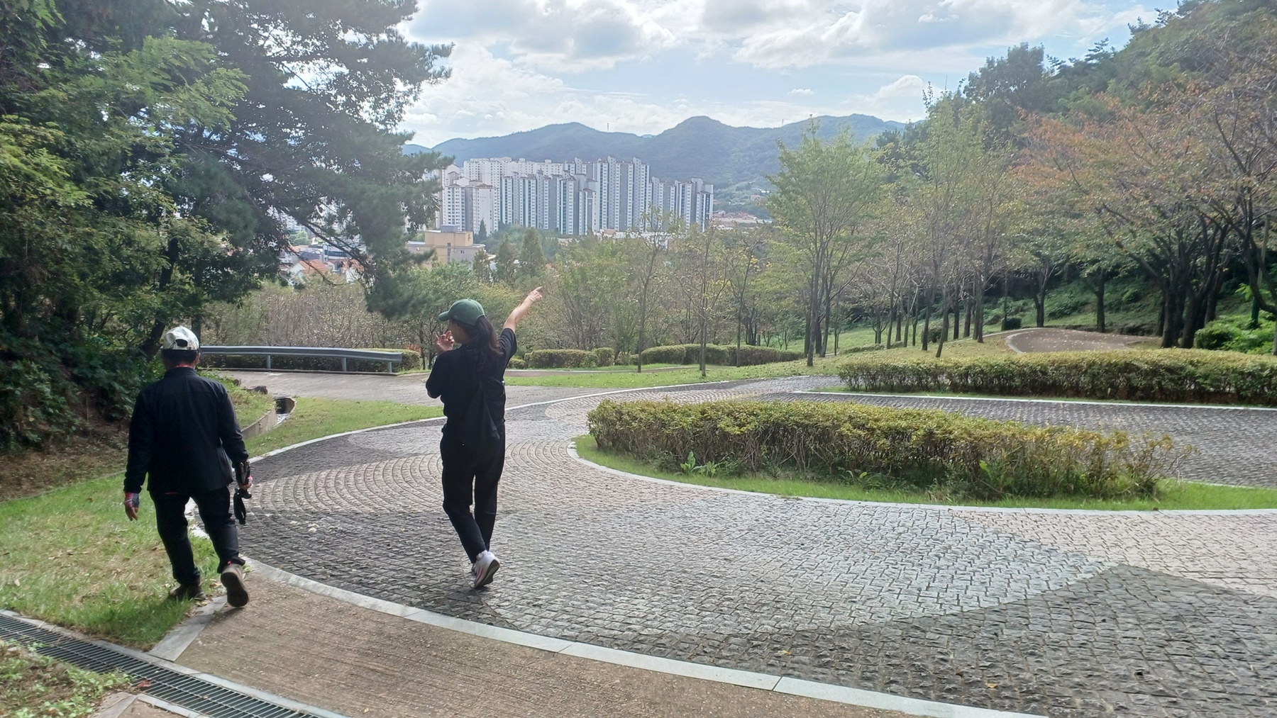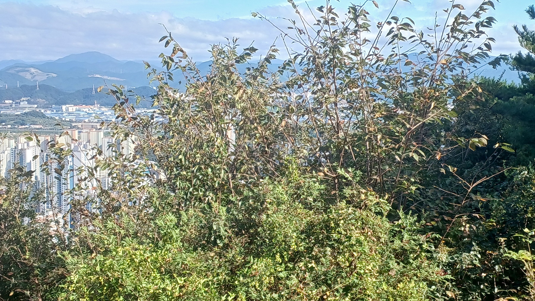 '저기 보이는 산이 굴암산 입니다' 라고 동행한 아가씨가 손가락으로 알려 준다.
