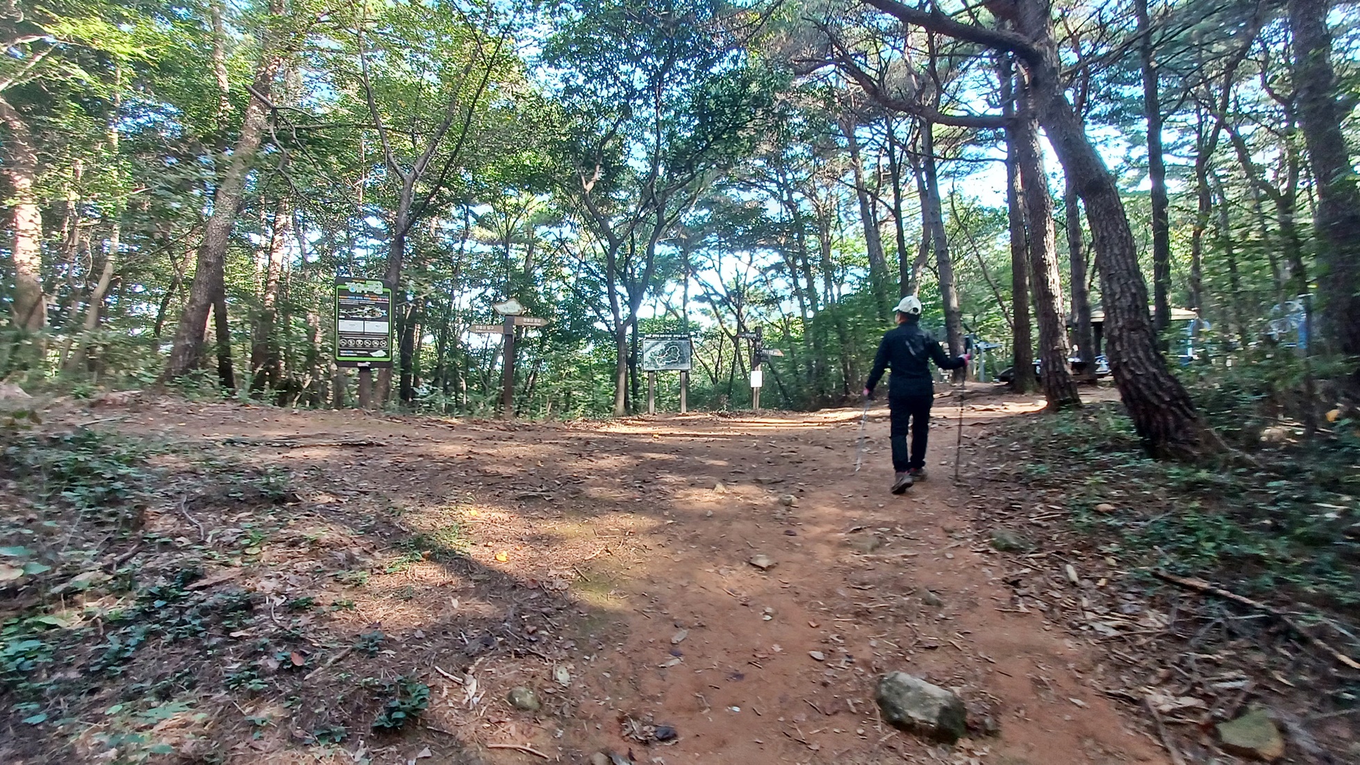 체련 단련장에서 1.0km 오른 이정표 갈림길 삼거리로,