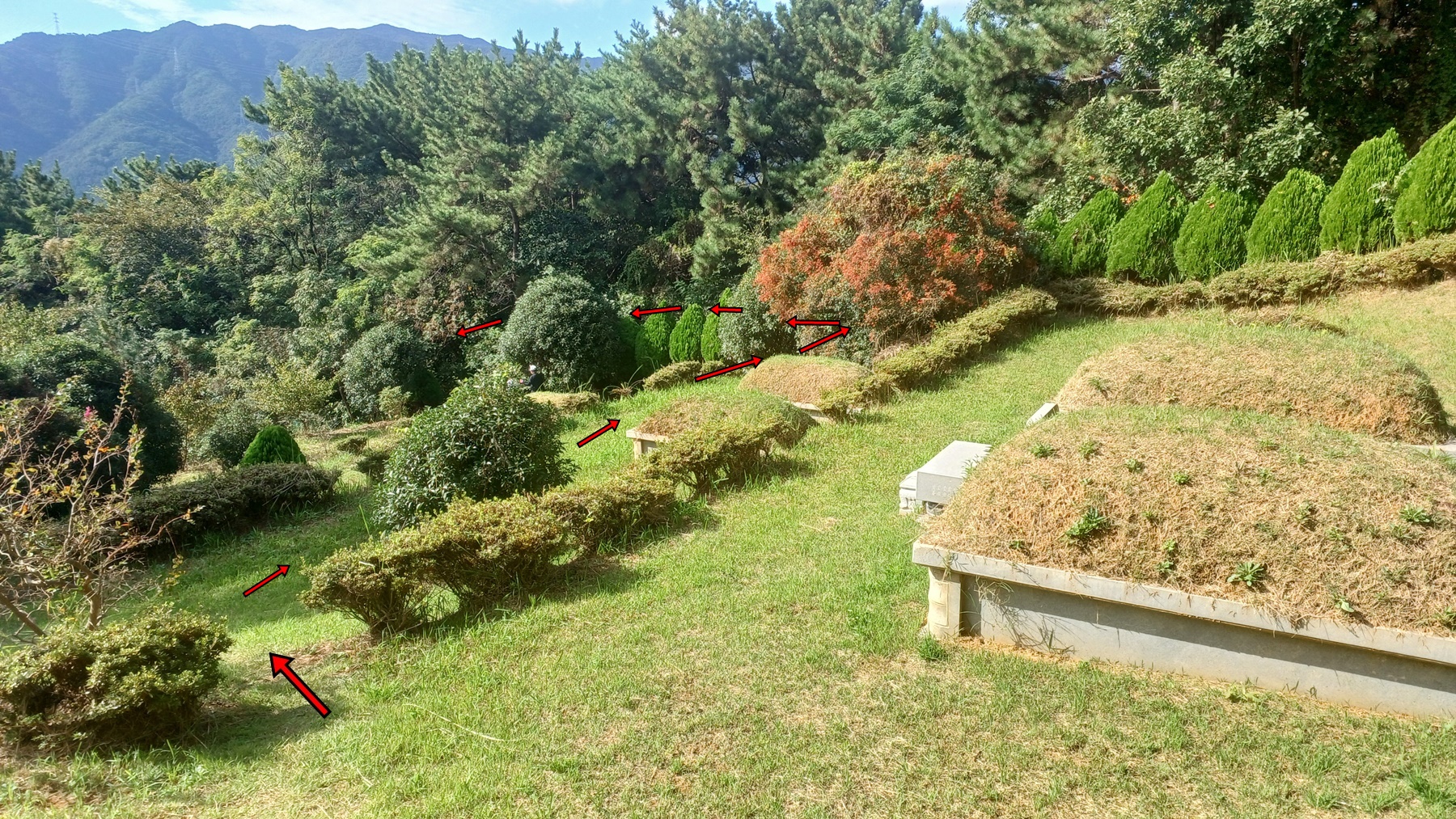 우측 향나무 사이로 들어가면 묘원의 묘소가 나온다.
