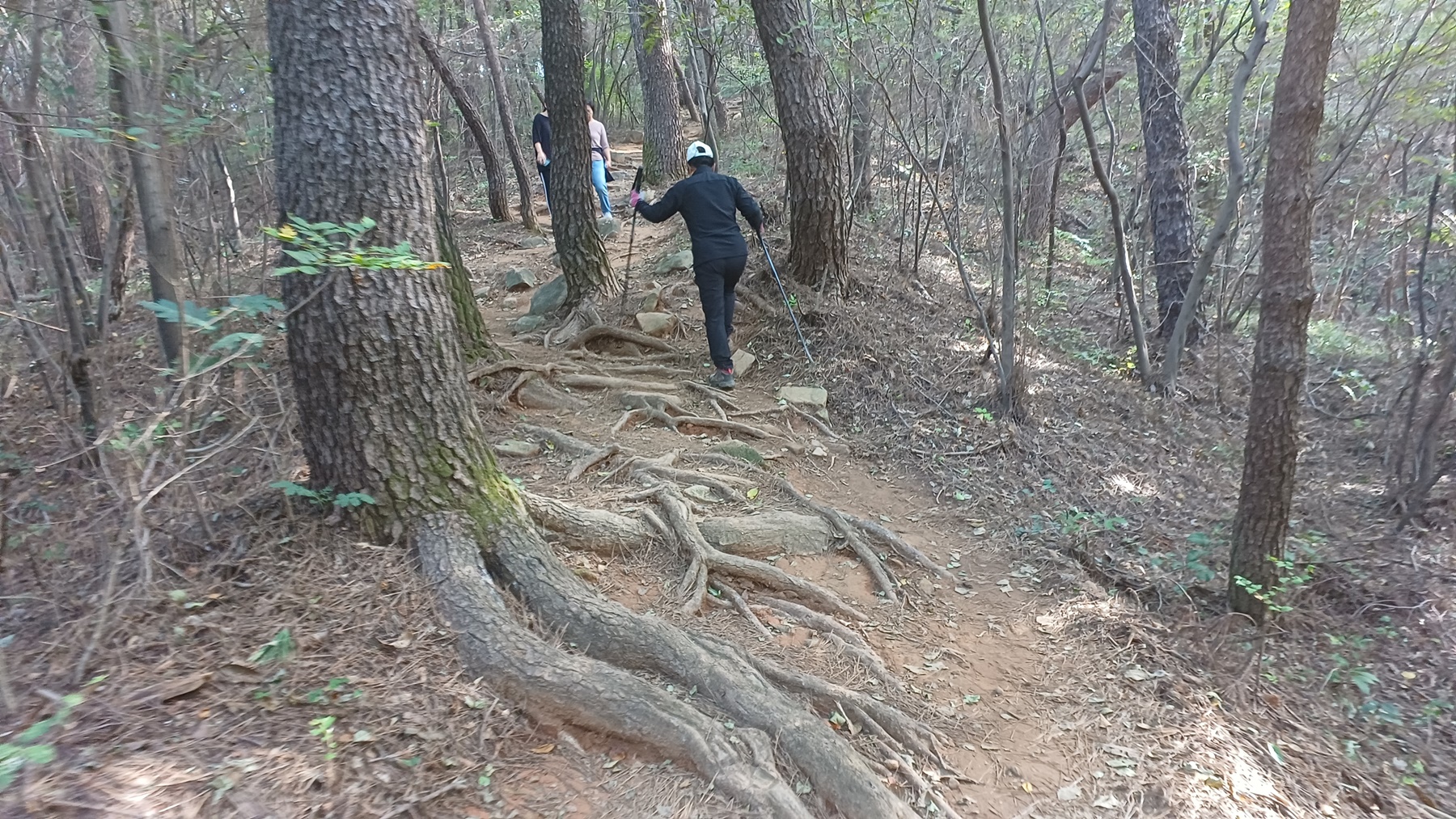 나무 뿌리가 드러난 오르막 능선길을 오르면
