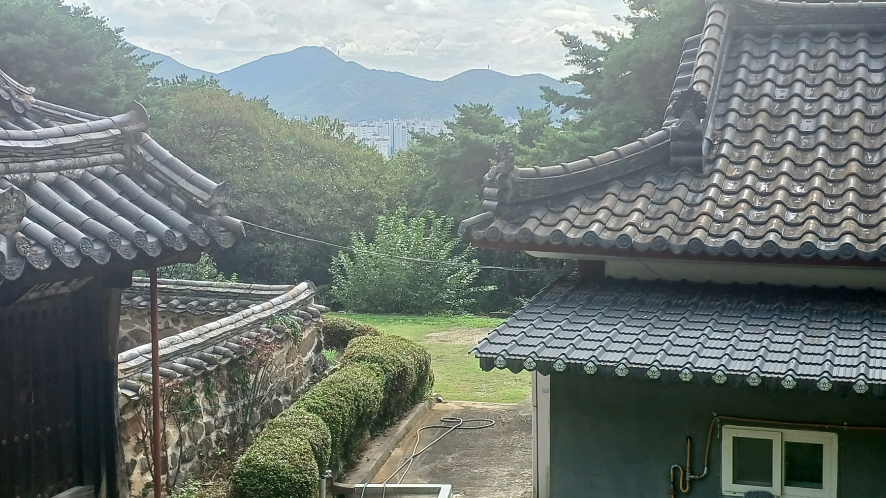화산정사와 전주 이씨 추모비 사이를 지나면