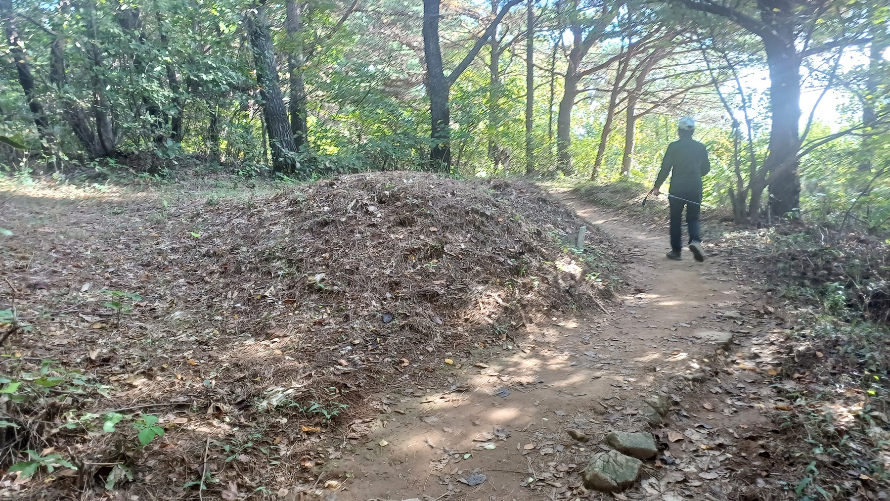 축대로 만들어진 묘원 앞을 지나 오르막길을 올라