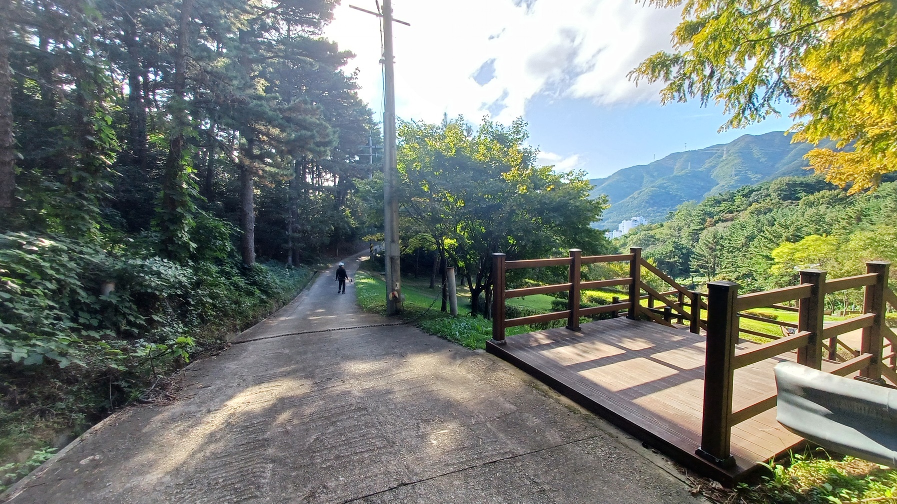 산길로 접어 드는 포장길을 따라 조금 오르면