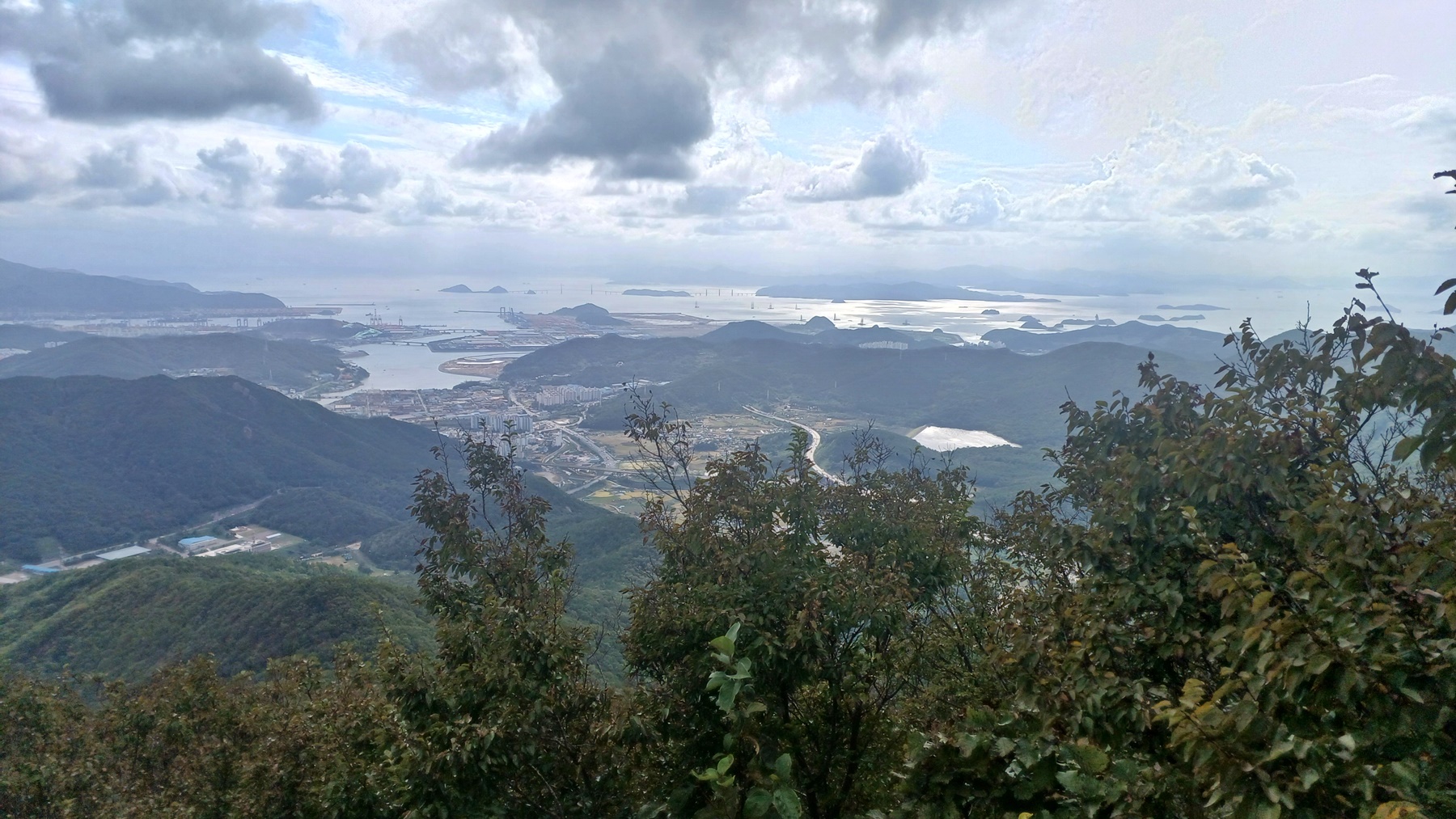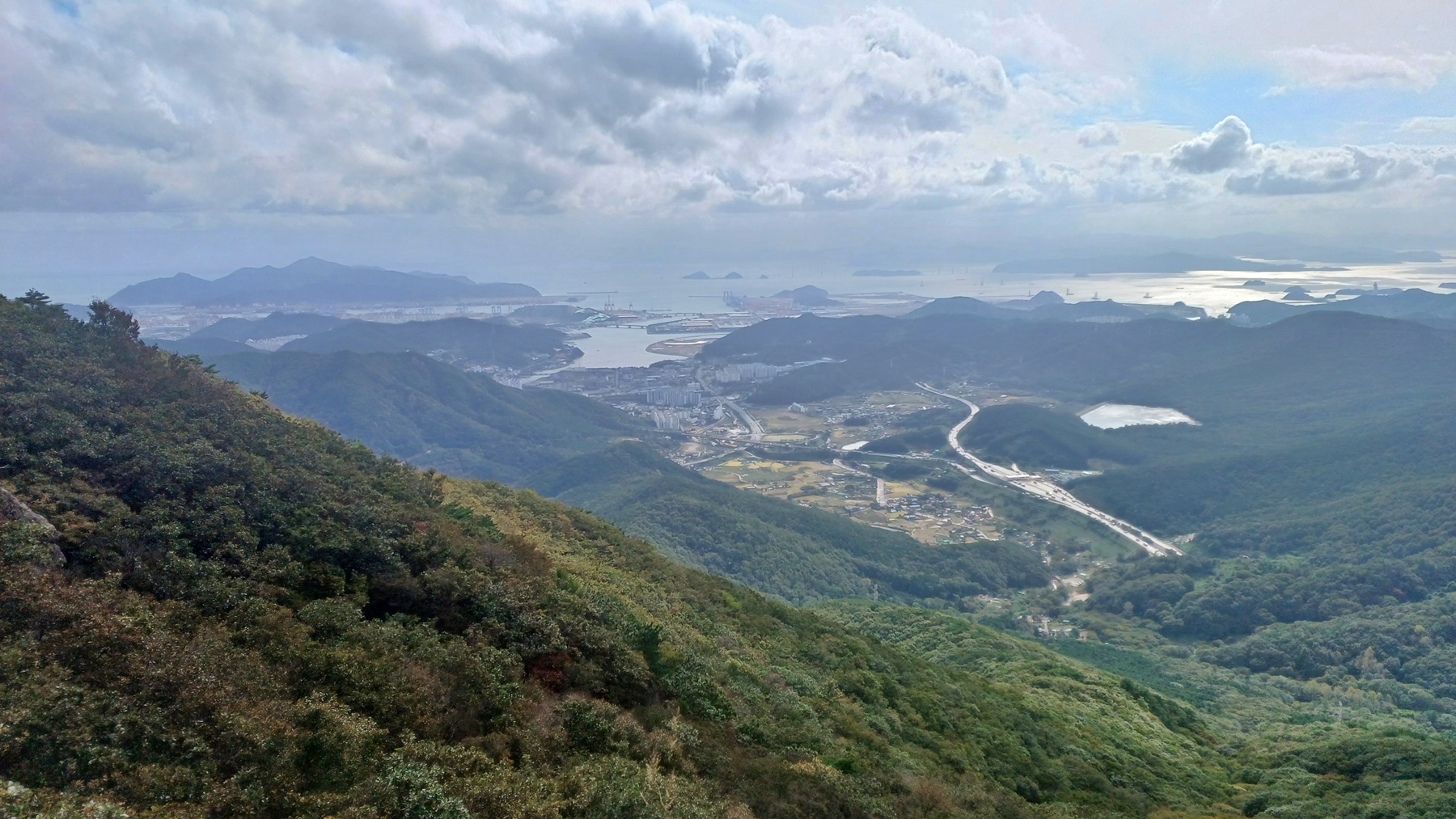 마봉산 너머로 부산 신항과 가덕도가 조망되고,