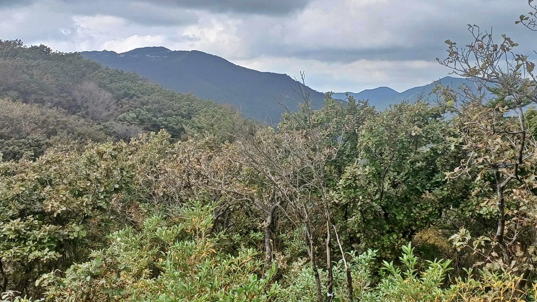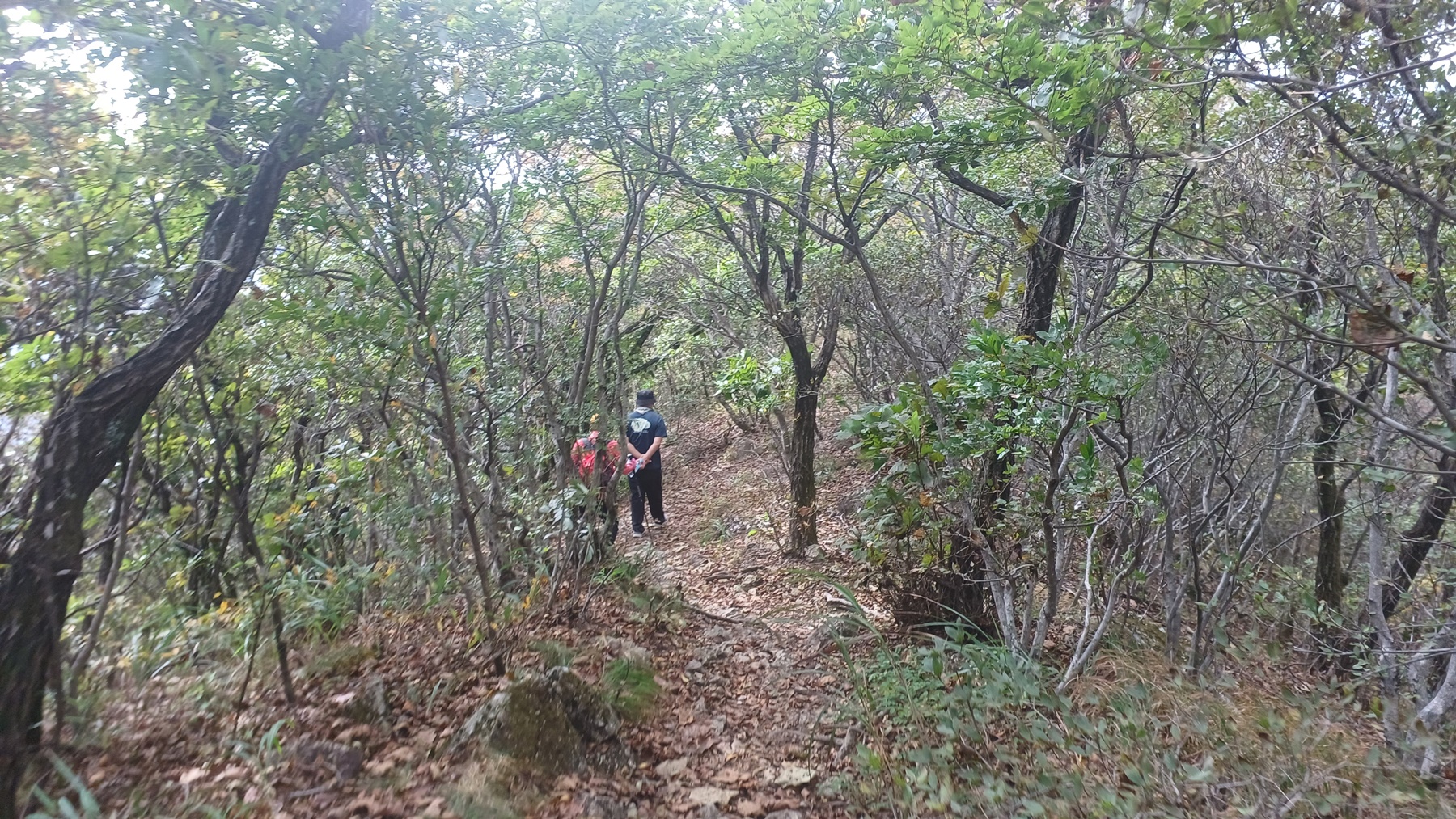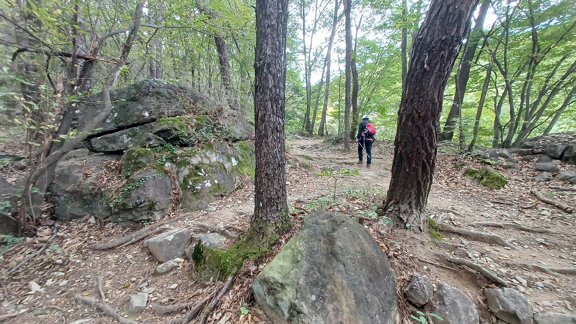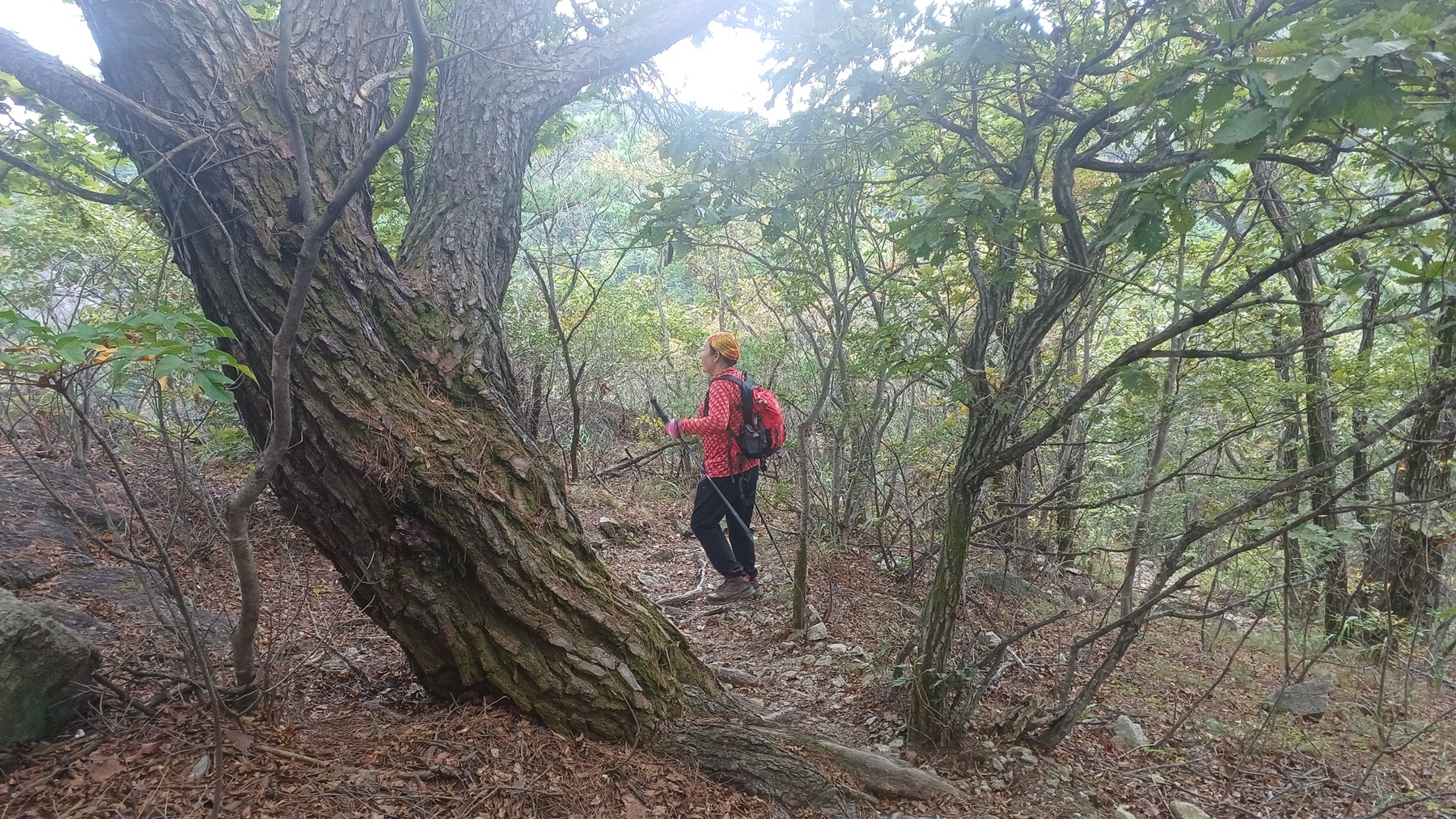 다시 등산로로 되돌아와 큰아름의 참나무 아래를 지나면