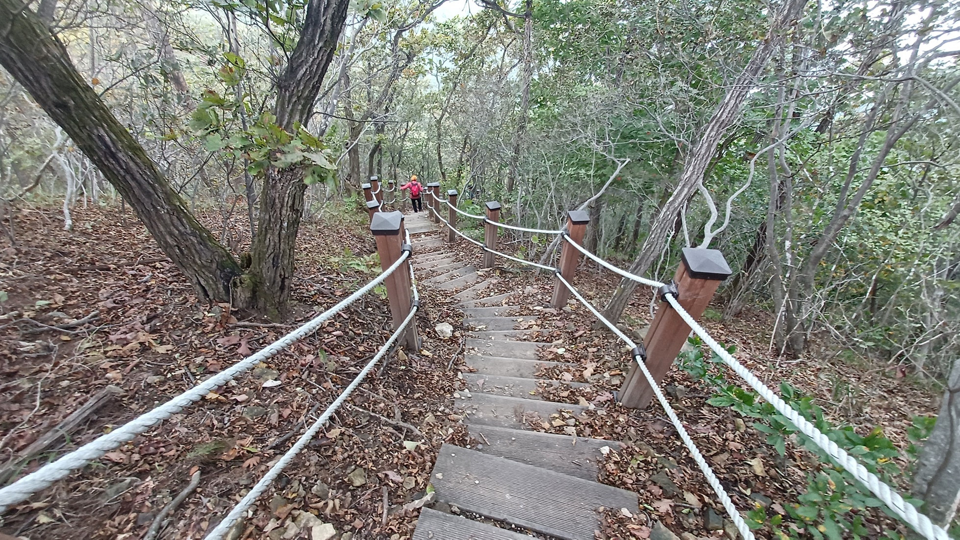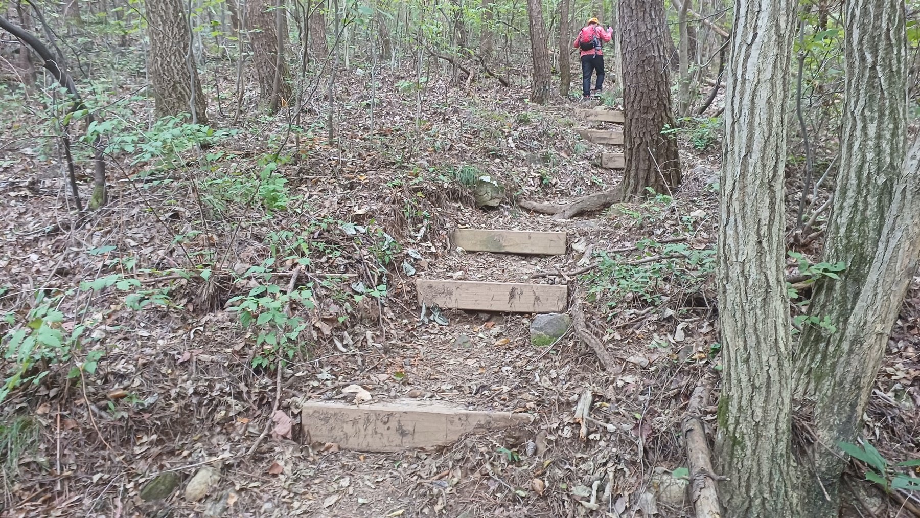 두번째 벤치를 지나 가파른 목계단을 오르면