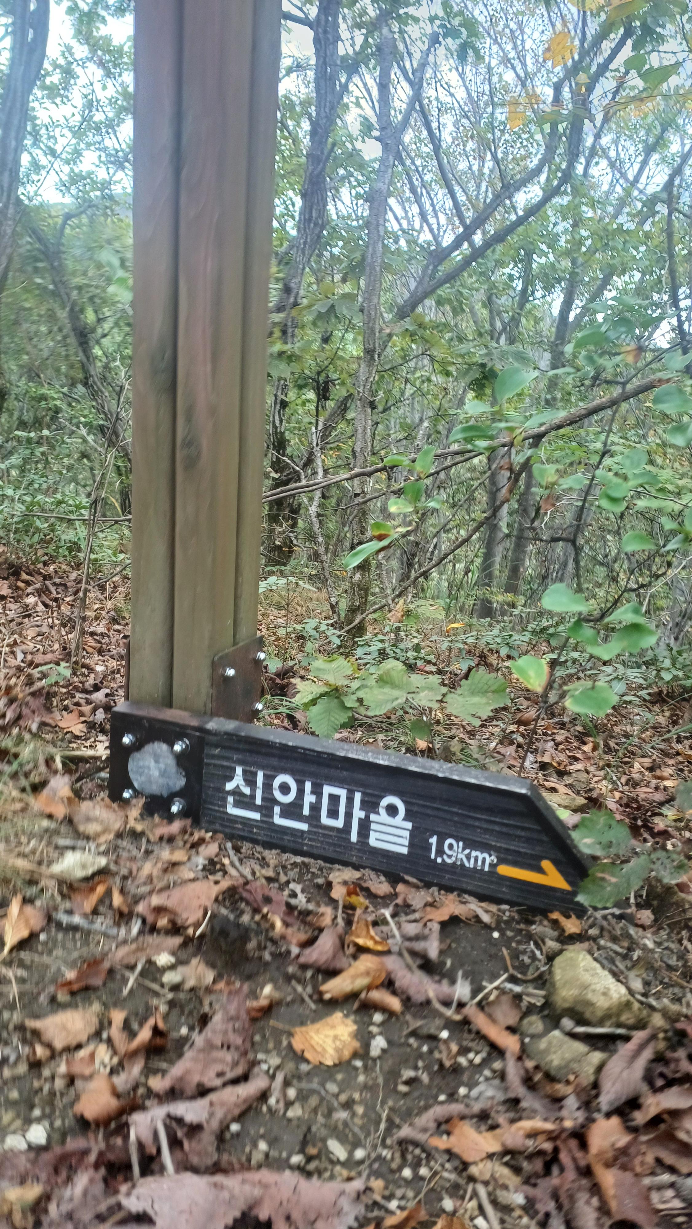 A 코스 신안 마을로 하산하는 갈림길 이정표를 만난다.