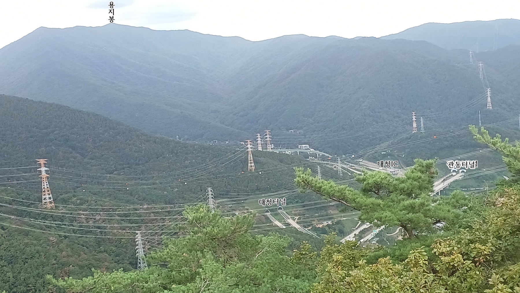 바로 아래에는 남해안 대로의 대청 터널과 대청IC와 남해 고속도로 제3지선의 관동 터널이 조망 된다.