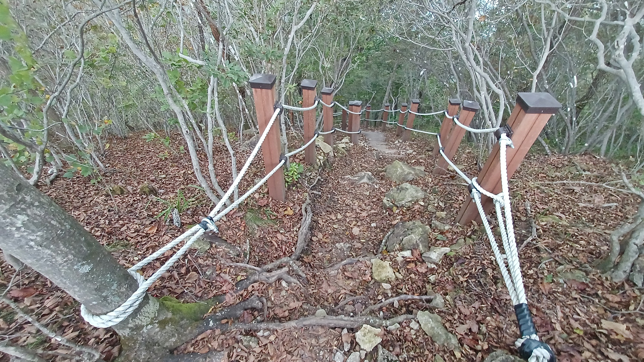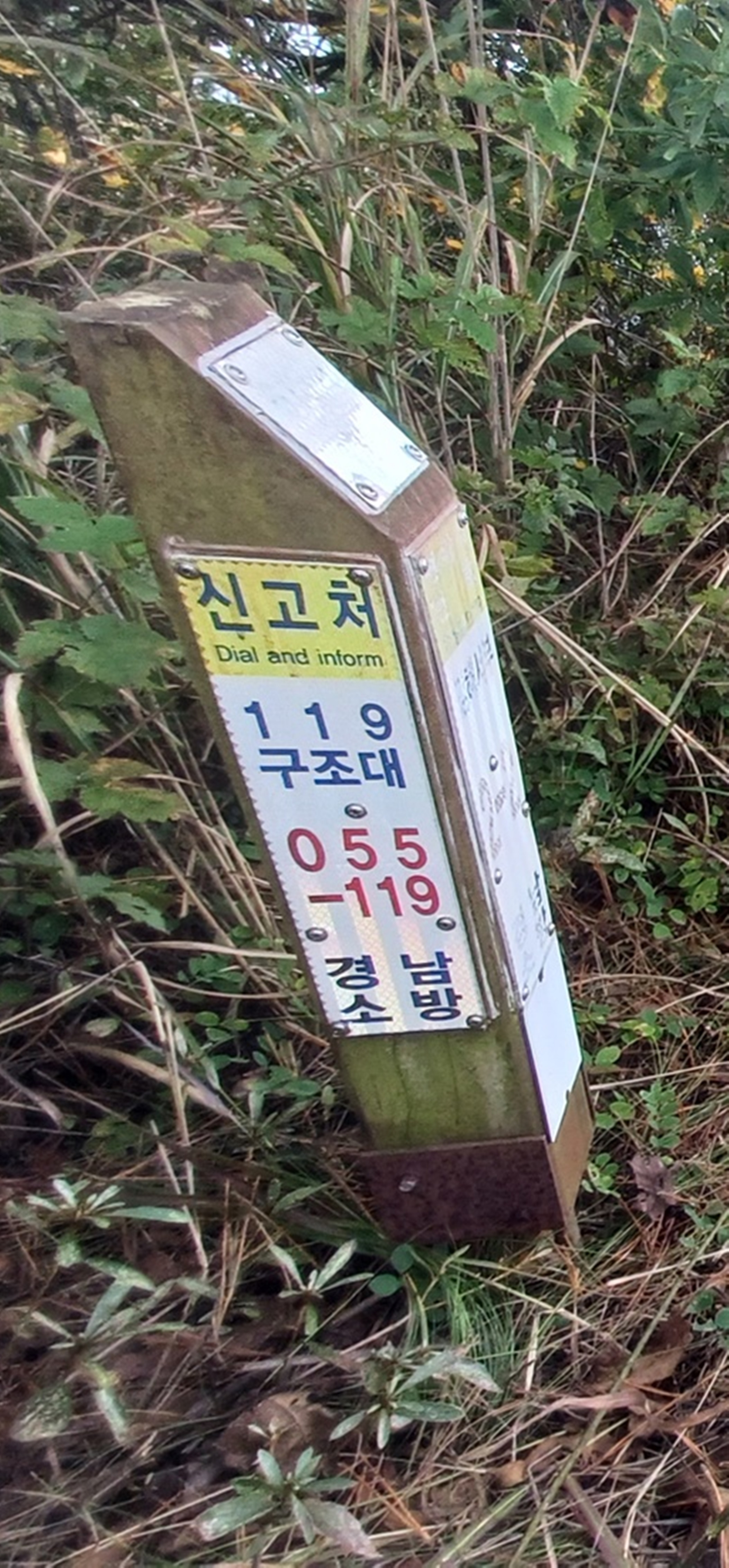 좌측 내리막길은 김해 외고로 하산하는 길이며,우측은 들머리로 하산하는 B코스로 하산하는 계곡길이다.